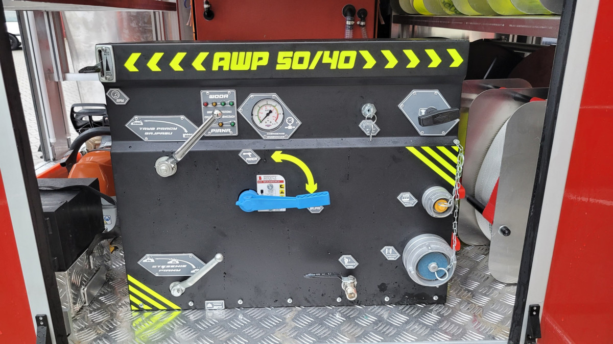 Dodatkowo pojazd wyposażony jest w automatyczną ładowarkę 230V do ładowania akumulatora, w orurowanie ochronne wykonane z rury chromowanej zainstalowane w przedniej części pojazdu, agregat wysokociśnieniowy wodno-pianowy zabudowany w ramie szkieletowej aluminiowej, zbiornik wody o pojemności 200l z wydzieloną dodatkową przestrzenią na środek pianotwórczy i dodatkowy zestaw kół wraz z oponami zimowymi.