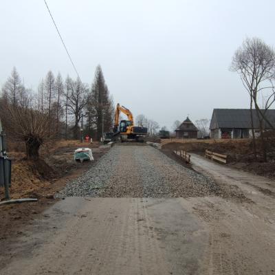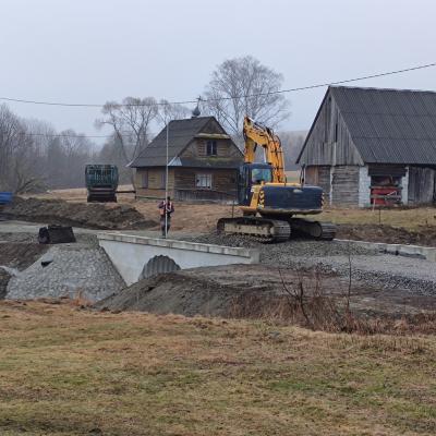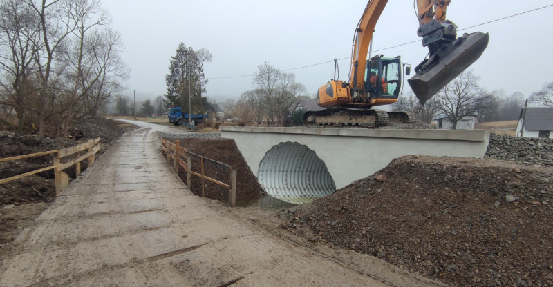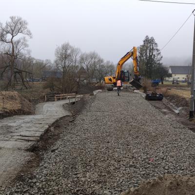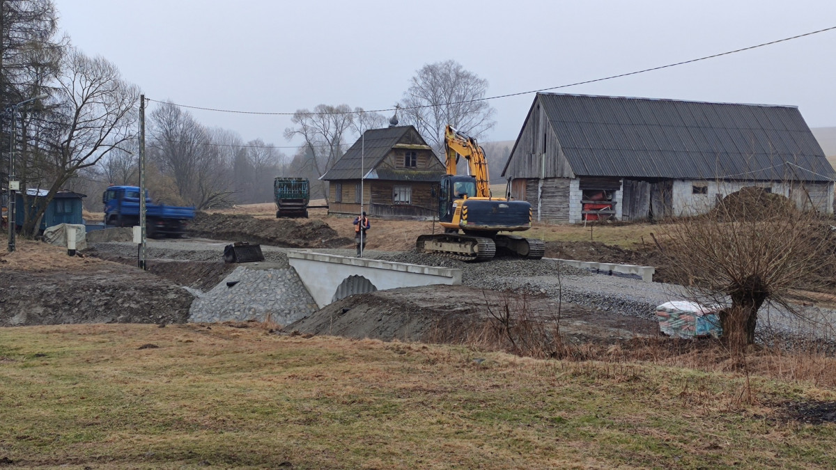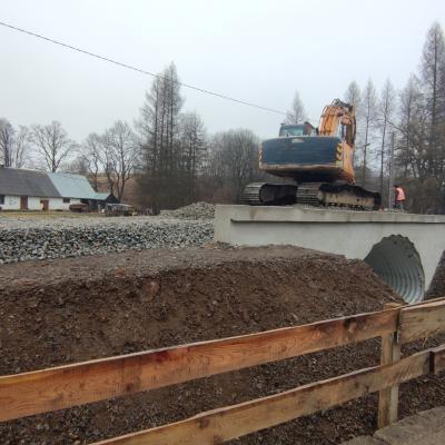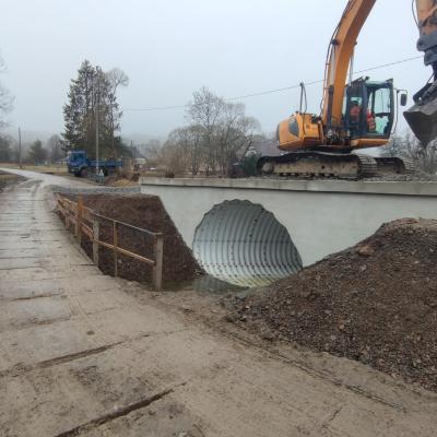 W ramach zadania wykonane zostaną zabezpieczenia skarp na wlocie i wylocie przepustu z kamienia łamanego, dno potoku przed przepustem oraz adaptacja drogi na dojazdach do przepustu.