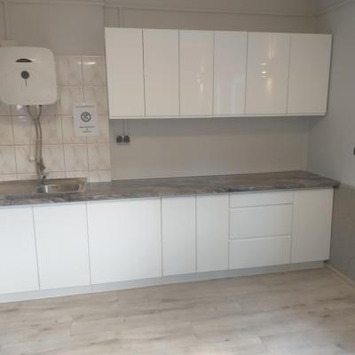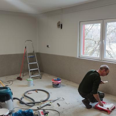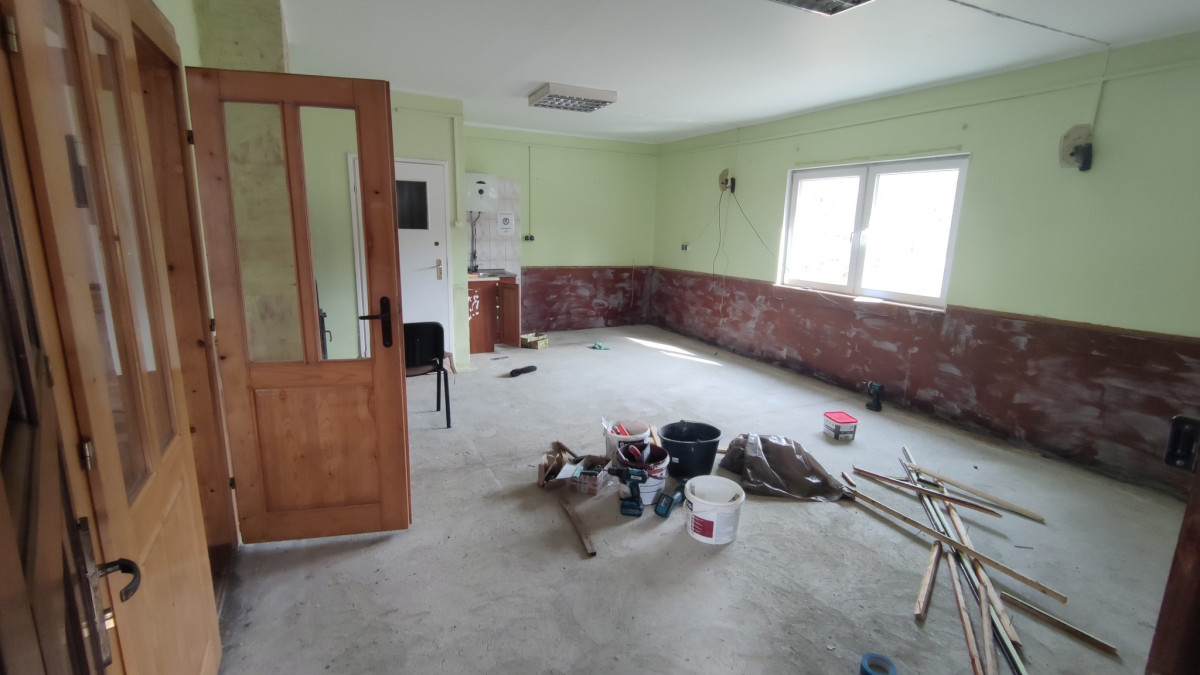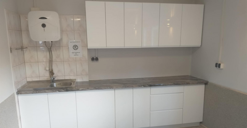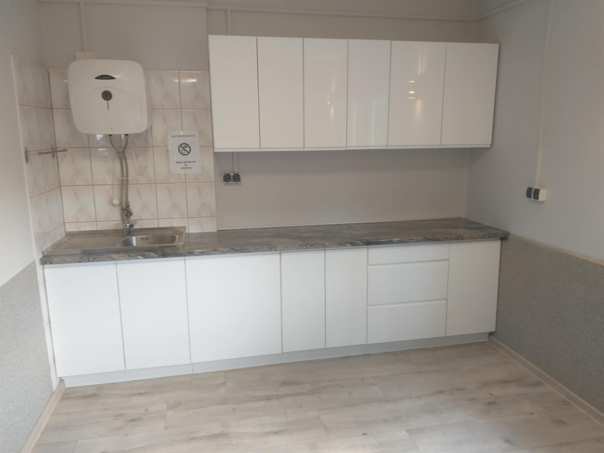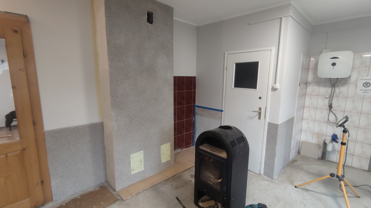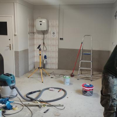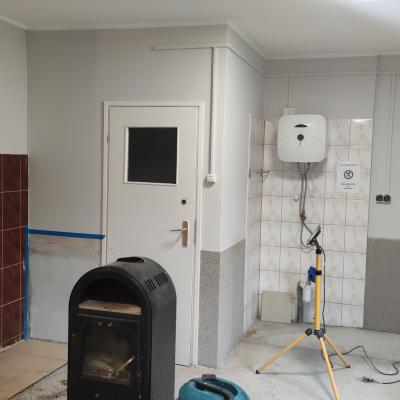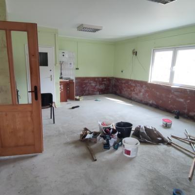 Zakres zadania obejmował dostosowanie istniejącego zaplecza kuchennego do wymogów sanitarno-higienicznych: (wyrównanie - szpachlowanie i pomalowanie ścian i sufitu farbami emulsyjnymi, położenie kafelek, wymiana stolarki drzwiowej (drzwi wewnętrzne), ułożenie nowej podłogi oraz zakup mebli kuchennych.