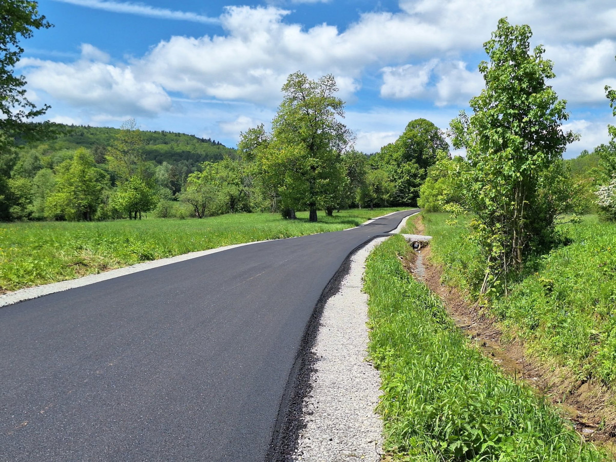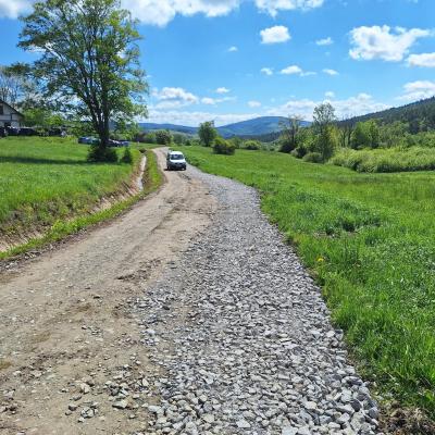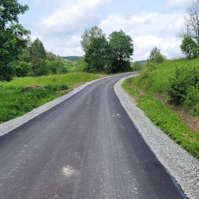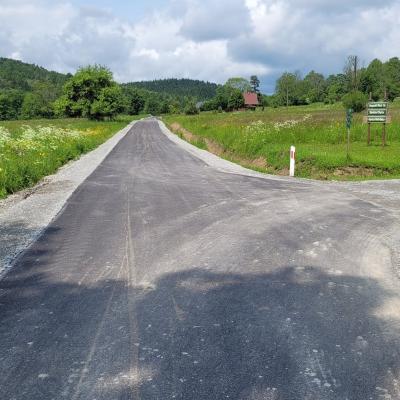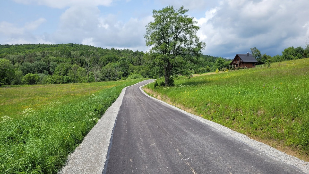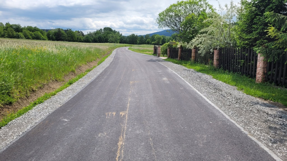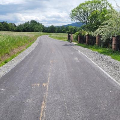 Zakres zadania obejmował przebudowę drogi w obrębie dz. nr ewid. 56/3, 55/1, 3/38, 3/43, 3/39, 57/1, 53/2, 51/2, 58/1, 59/1, 60/3, 49/2, 48/2, 47/2, 55/5 o długości 800m oraz w obrębie dz. nr ewid. 47/2, 47/4, 55/5, 46/2, 61/2. długości 393 m. Przebudowana droga jest szerokości 3,5m o nawierzchni bitumicznej, w tym wykonano zjazdy o nawierzchni bitumicznej, pobocza z kruszywa o szerokości 0,75m oraz mijankę o długości 10m i szerokości 1,5m. Ponadto zakres robót do wykonania obejmował: roboty pomiarowe przy liniowych robotach ziemnych, roboty ziemne, profilowanie i zagęszczenie podłoża, podbudowy z kruszyw łamanych, oczyszczenie i skropienie warstw konstrukcyjnych, nawierzchnie z mieszanek mineralno-bitumicznych, oczyszczenie urządzeń odwadniających, wykonanie poboczy z kruszyw łamanych oraz inwentaryzację geodezyjną powykonawczą.