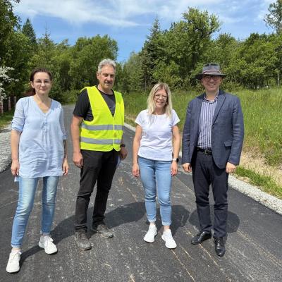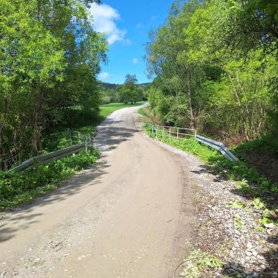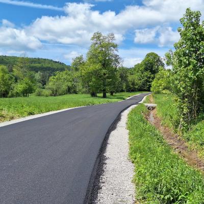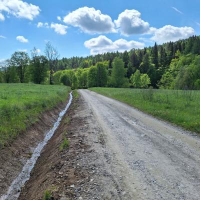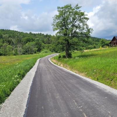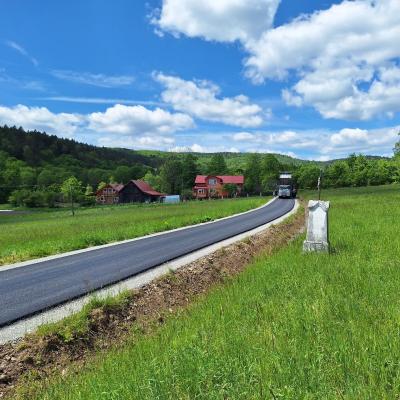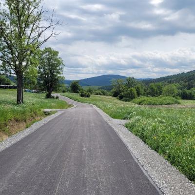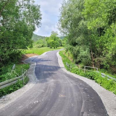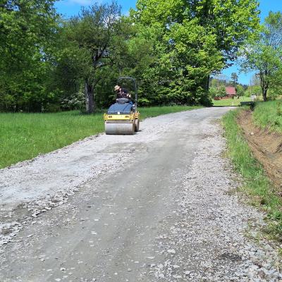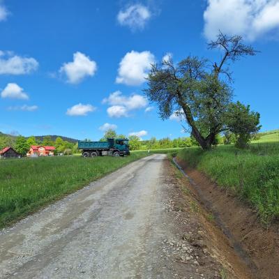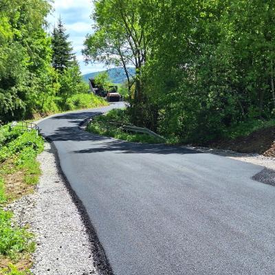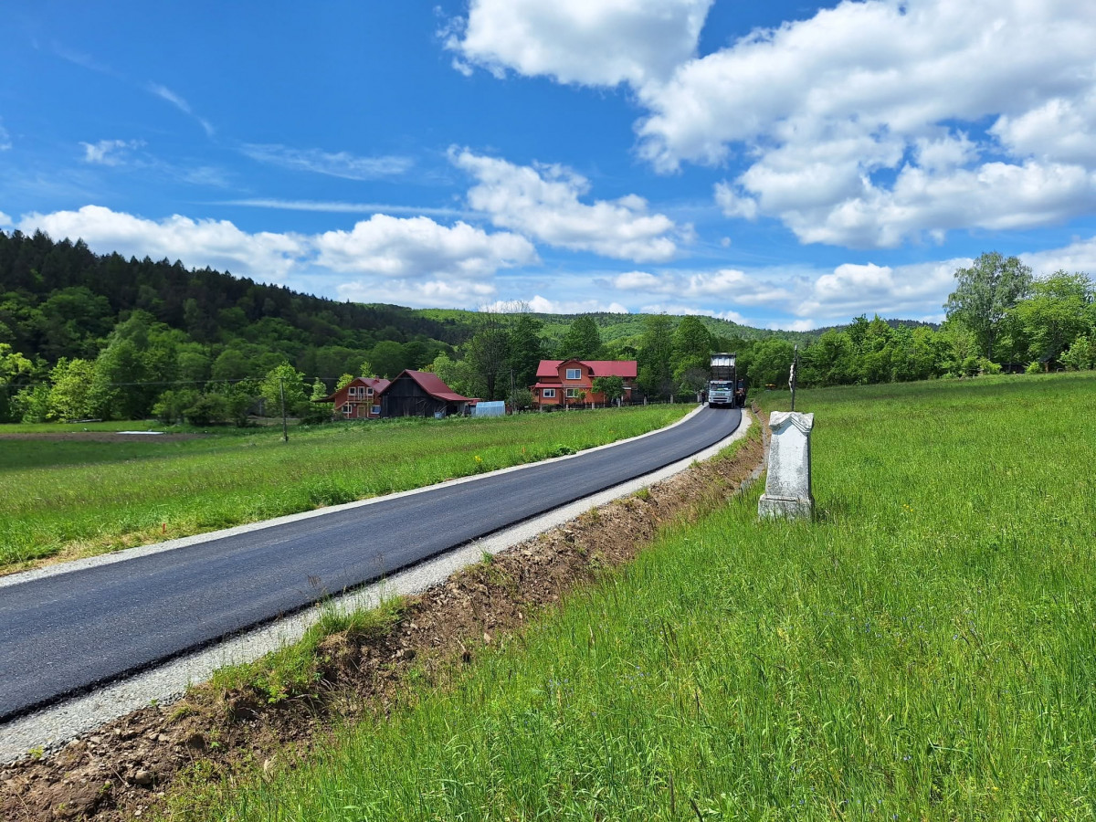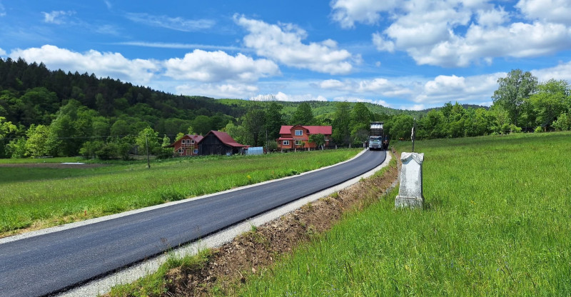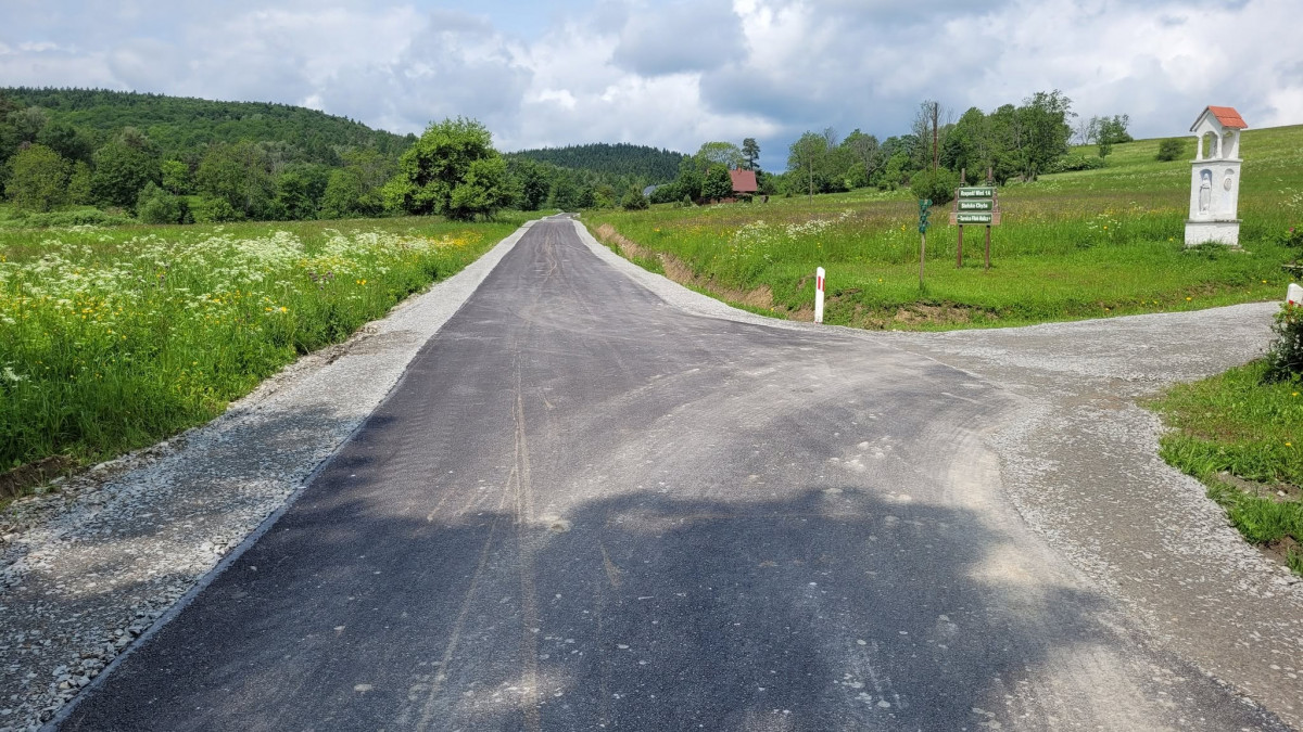 Zakres zadania obejmował przebudowę drogi w obrębie dz. nr ewid. 56/3, 55/1, 3/38, 3/43, 3/39, 57/1, 53/2, 51/2, 58/1, 59/1, 60/3, 49/2, 48/2, 47/2, 55/5 o długości 800m oraz w obrębie dz. nr ewid. 47/2, 47/4, 55/5, 46/2, 61/2. długości 393 m. Przebudowana droga jest szerokości 3,5m o nawierzchni bitumicznej, w tym wykonano zjazdy o nawierzchni bitumicznej, pobocza z kruszywa o szerokości 0,75m oraz mijankę o długości 10m i szerokości 1,5m. Ponadto zakres robót do wykonania obejmował: roboty pomiarowe przy liniowych robotach ziemnych, roboty ziemne, profilowanie i zagęszczenie podłoża, podbudowy z kruszyw łamanych, oczyszczenie i skropienie warstw konstrukcyjnych, nawierzchnie z mieszanek mineralno-bitumicznych, oczyszczenie urządzeń odwadniających, wykonanie poboczy z kruszyw łamanych oraz inwentaryzację geodezyjną powykonawczą.