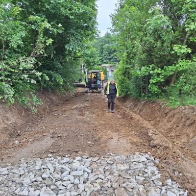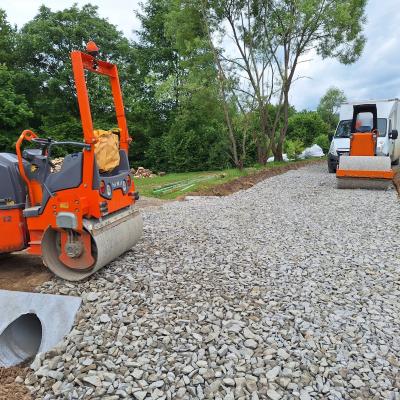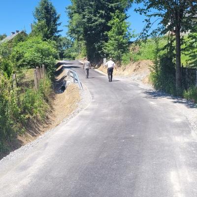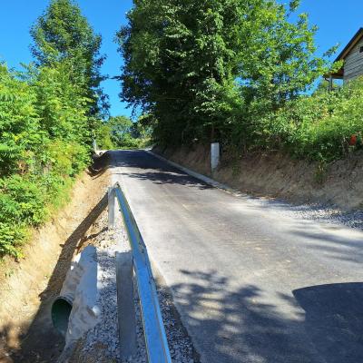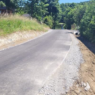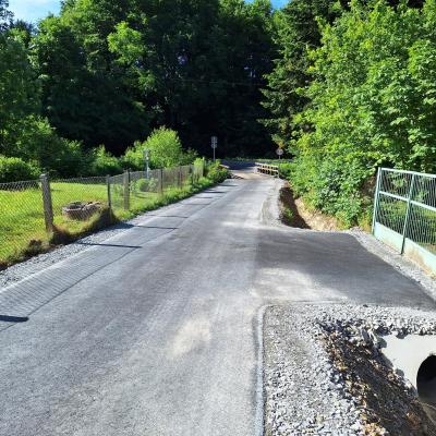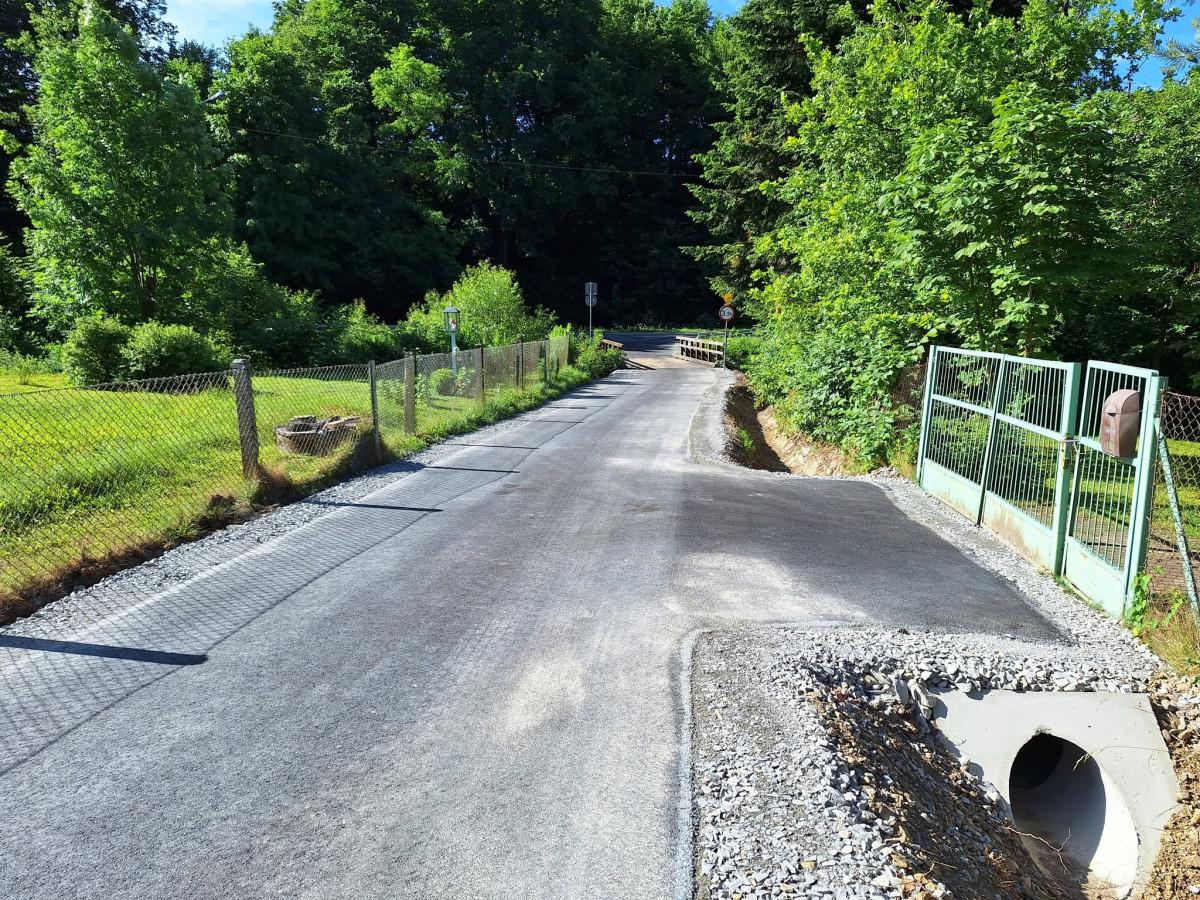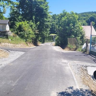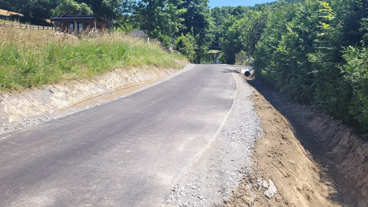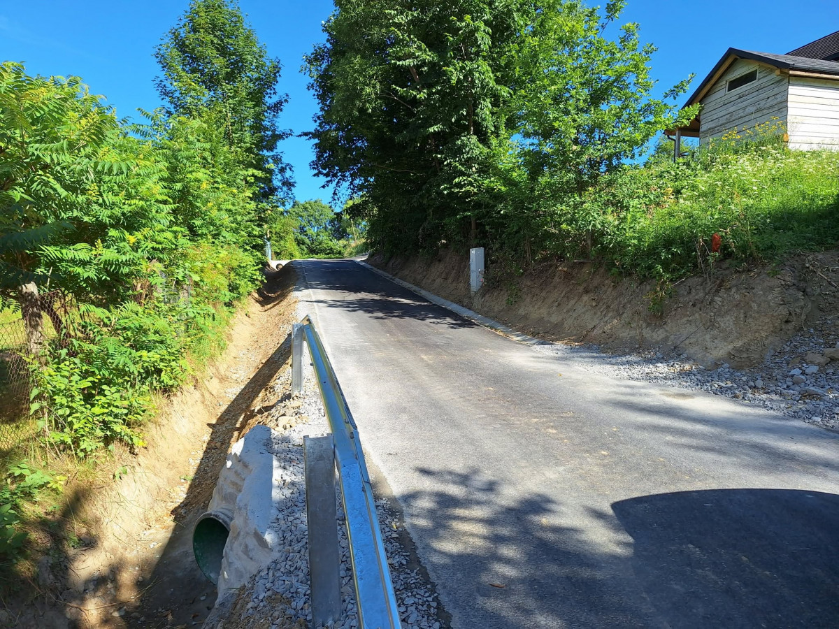 W ramach przebudowy wykonano jezdnię o szerokości 3m z betonu asfaltowego, pobocza 2x0,50m oraz odwodnienie przy pomocy rowu przydrożnego. Ponadto zakres robót do wykonania obejmował: roboty pomiarowe przy liniowych robotach ziemnych, karczowanie zagajników, rozebranie starych przepustów, roboty ziemne (oczyszczenie rowu, osadzenie przepustów), montaż nowych przepustów wraz z ściankami czołowymi, wykonanie koryta na poszerzeniach jezdni, profilowanie i zagęszczenie podłoża pod warstwy konstrukcyjne nawierzchni, podbudowy z warstw kruszywa naturalnego i łamanego, skropienie nawierzchni asfaltem, wykonanie nawierzchni z mieszanek mineralno-bitumicznych, wykonanie poboczy z kruszywa łamanego, oznakowanie pionowe, montaż barier na przepuście oraz inwentaryzację geodezyjną powykonawczą.
