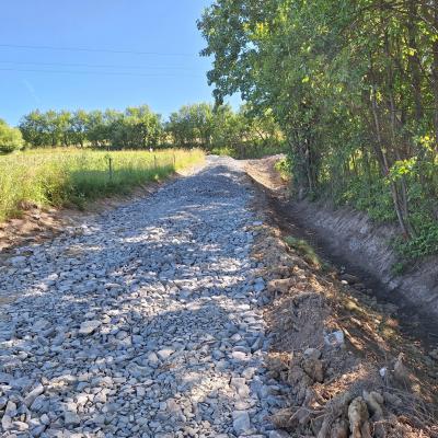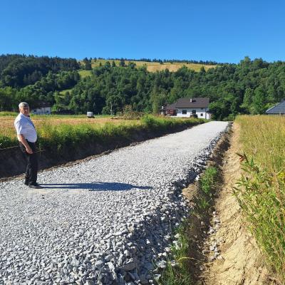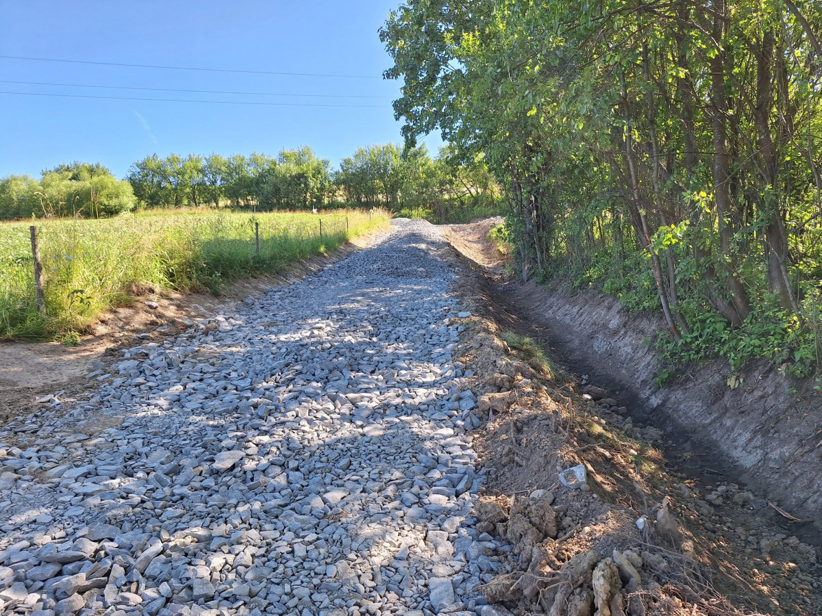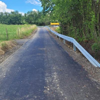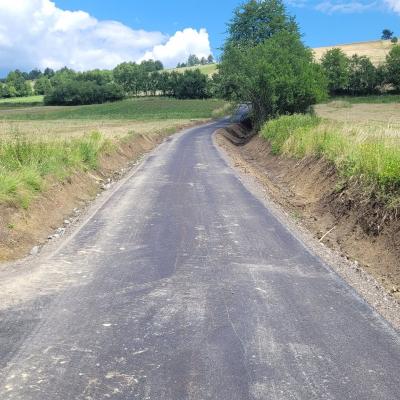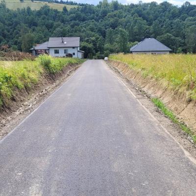 W ramach przebudowy wykonano jezdnię o szerokości 3m z betonu asfaltowego, obustronne pobocza o szerokości 0,25m, odwodnienie przy pomocy rowu przydrożnego. Ponadto zakres robót do wykonania obejmował: roboty pomiarowe przy liniowych robotach ziemnych, karczowanie zagajników, rozebranie starych przepustów, roboty ziemne (oczyszczenie rowu, osadzenie przepustów), montaż nowych przepustów wraz z umocnieniem wlotu i wylotu kostką brukową betonową na zaprawie cementowo-piaskowej, wykonanie koryta na poszerzeniach jezdni, profilowanie i zagęszczenie podłoża pod warstwy konstrukcyjne nawierzchni, wykonanie podbudowy z warstw kruszywa naturalnego i łamanego, skropienie nawierzchni asfaltem, nawierzchnie z mieszanek mineralno-bitumicznych, wykonanie poboczy z kruszywa łamanego, oznakowanie pionowe, montaż barier na przepuście oraz inwentaryzację geodezyjną powykonawczą.