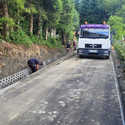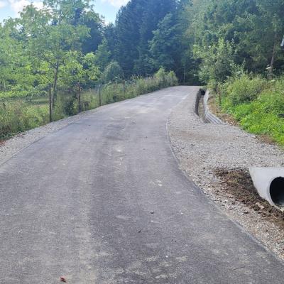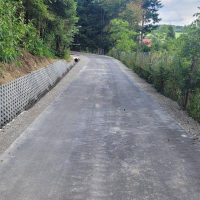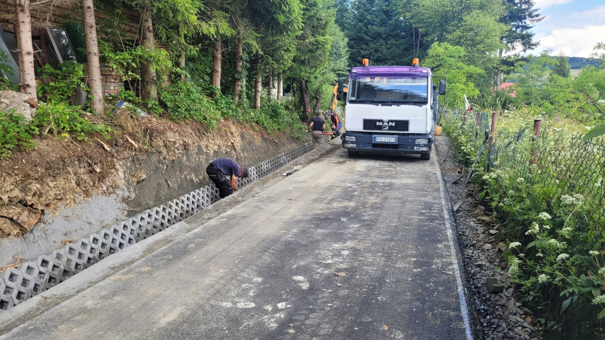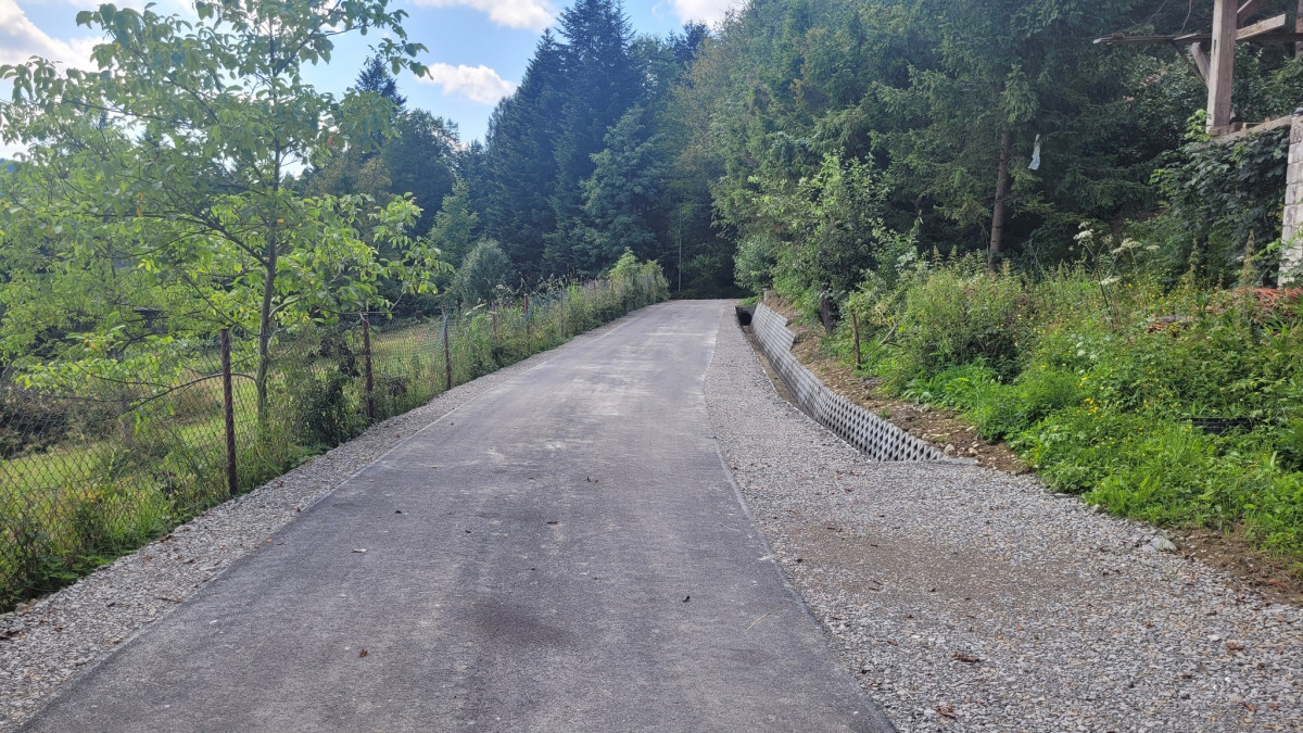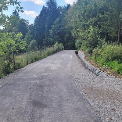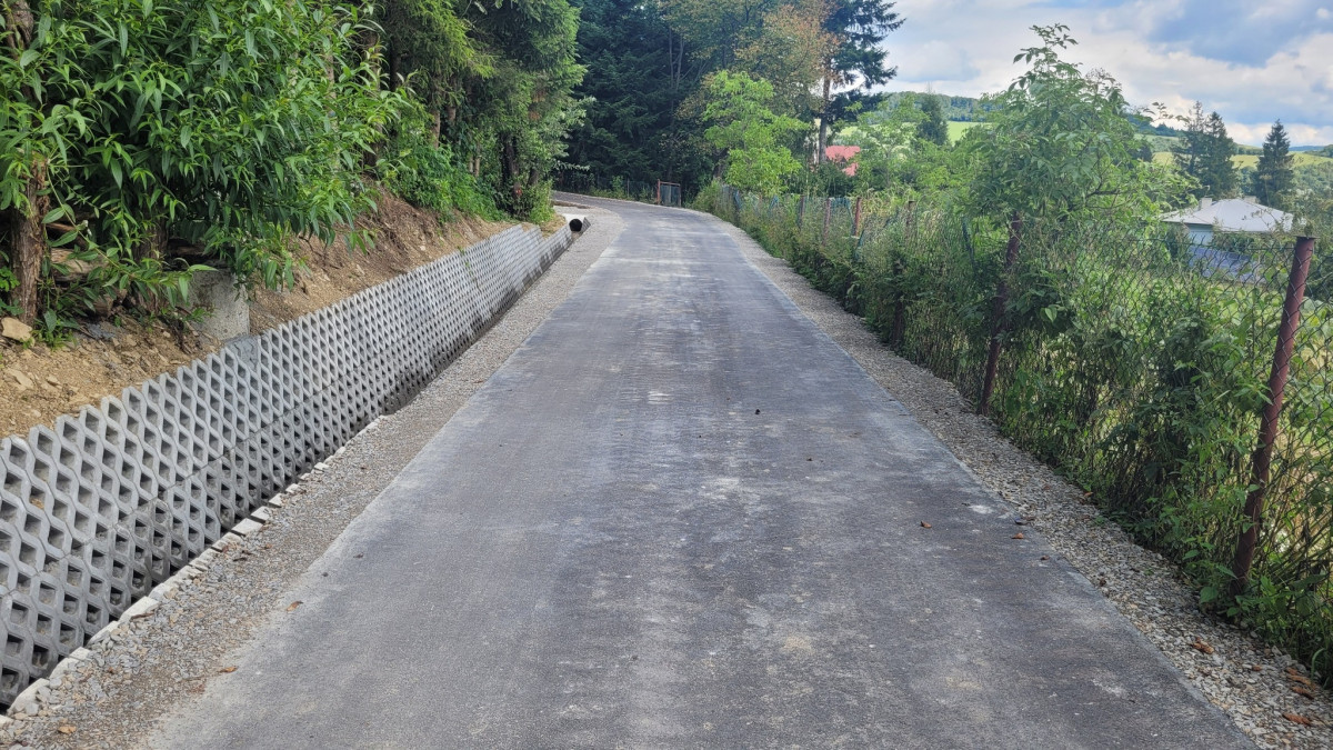 W ramach robót zmodernizowano drogę o długości 599,19m, szerokości 3m o nawierzchni bitumicznej oraz zjazdy o nawierzchni bitumicznej. Pobocza o szerokości 0,5m wykonano z kruszywa oraz wymieniono istniejące korytka betonowe na korytka betonowe o wymiarach 50x50x12cm na odcinku 77mb. Ponadto zakres robót do wykonania obejmował: roboty pomiarowe przy liniowych robotach ziemnych, wycinka drzew, roboty rozbiórkowe (frezowanie nawierzchni, demontaż krawężników, rozebranie: ścieków z elementów betonowych, przepustów z ściankami czołowymi), regulacja studzienek, roboty ziemne, profilowanie i zagęszczenie podłoża, ułożenie krawężników na ławie betonowej z oporem, montaż przepustów oraz ścieku korytkowego, podbudowy z kruszyw łamanych, oczyszczenie i skropienie warstw konstrukcyjnych, nawierzchnie z mieszanek mineralno-bitumicznych oraz kamienia, wykonanie poboczy z kruszyw łamanych, oznakowanie pionowe, odmulenie rowów oraz inwentaryzację geodezyjną powykonawczą.