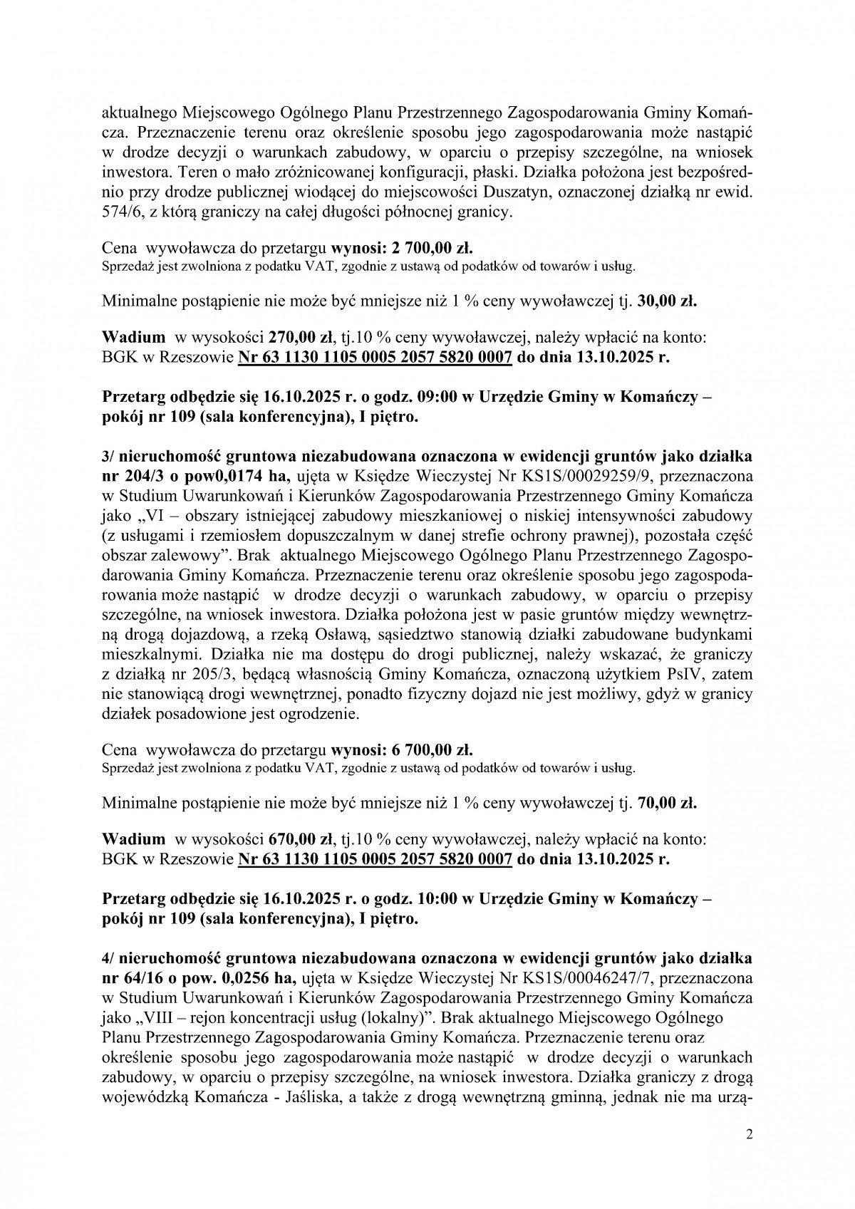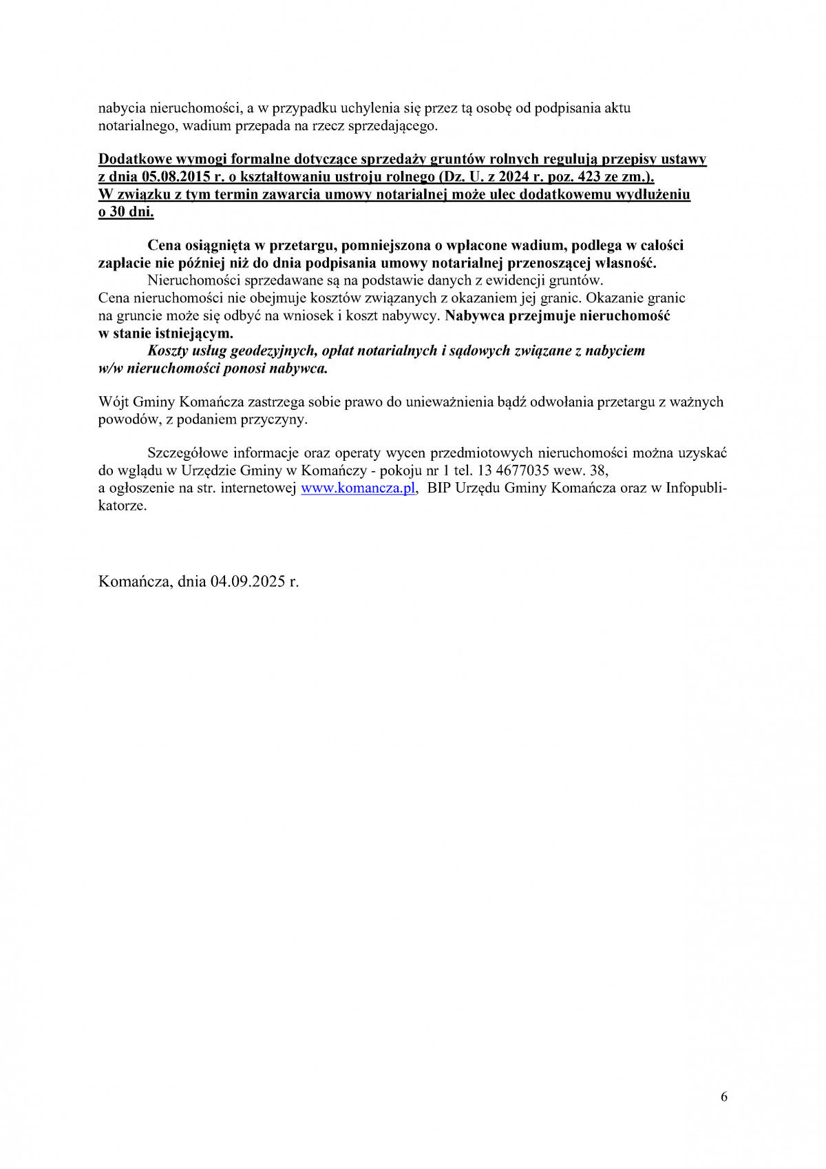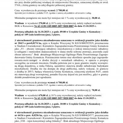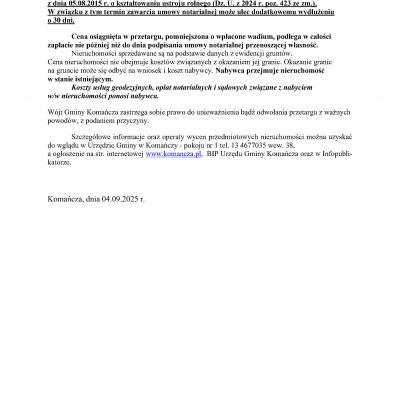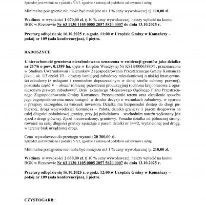 Wójt Gminy Komańcza ogłasza I przetarg ustny nieograniczony na sprzedaż nieruchomości