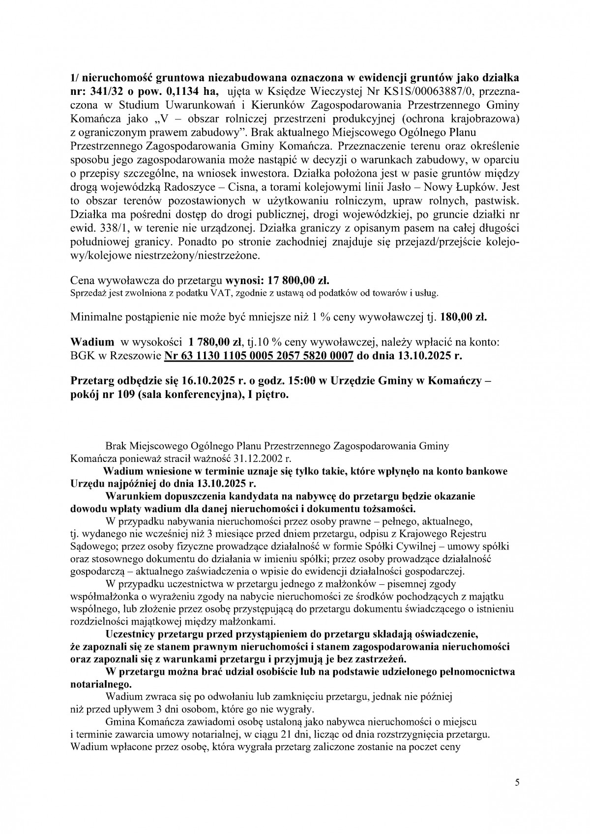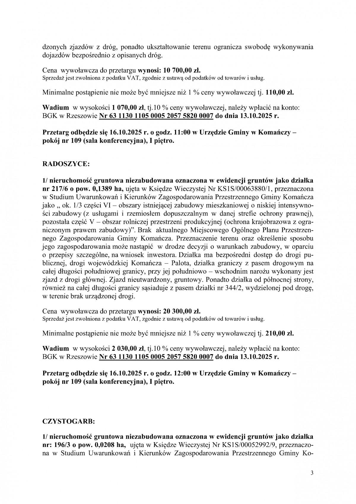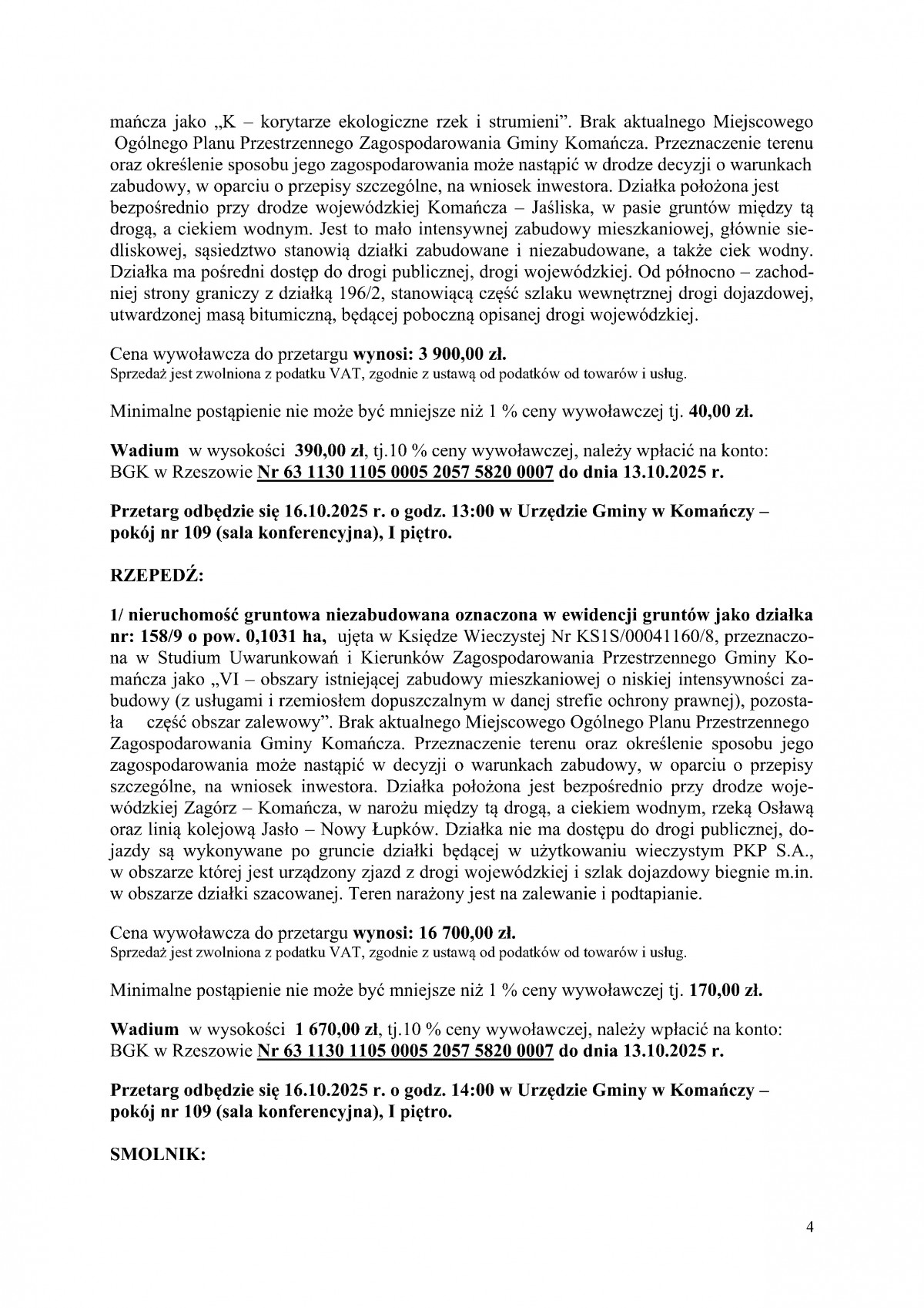 Wójt Gminy Komańcza ogłasza I przetarg ustny nieograniczony na sprzedaż nieruchomości