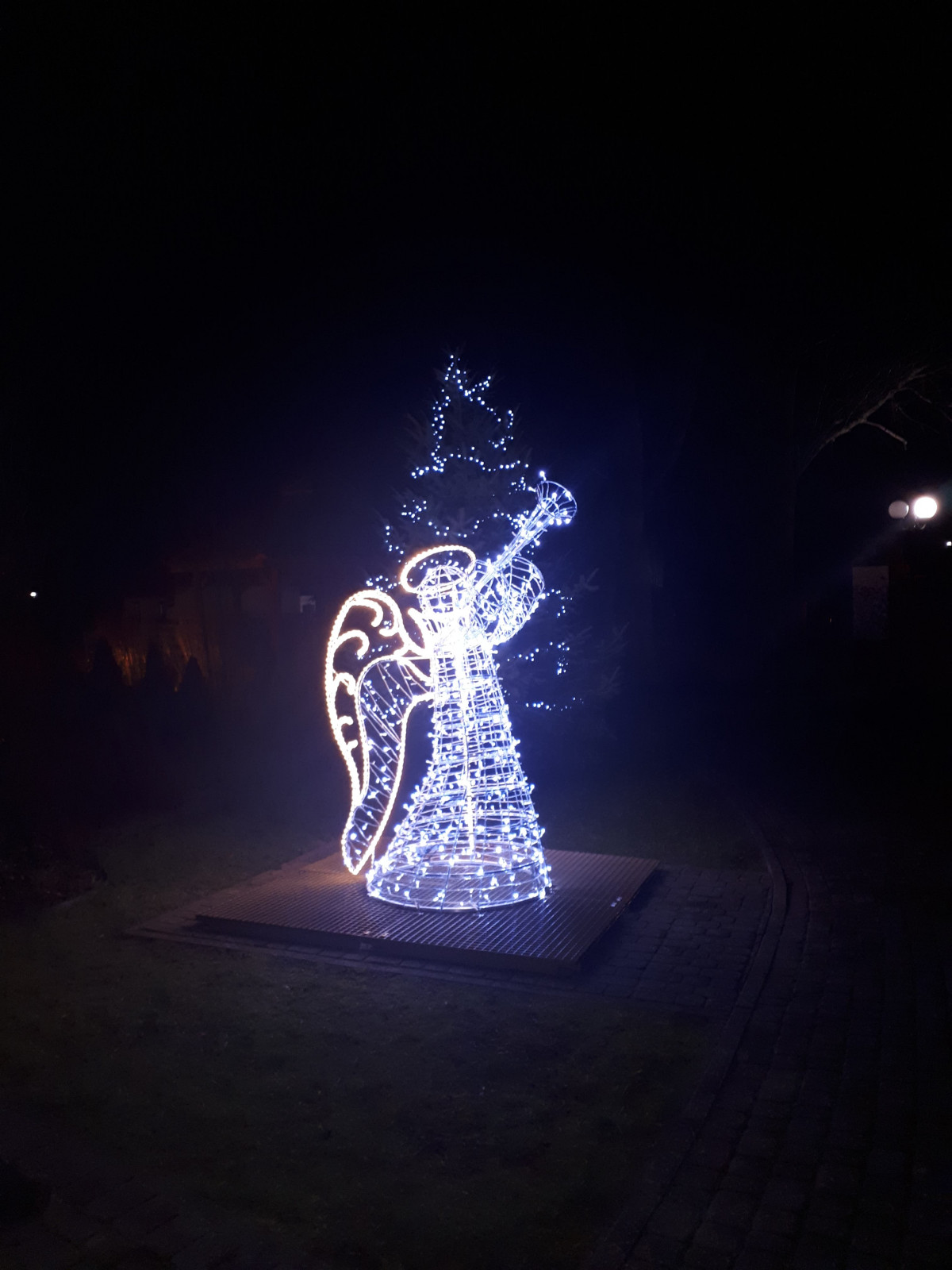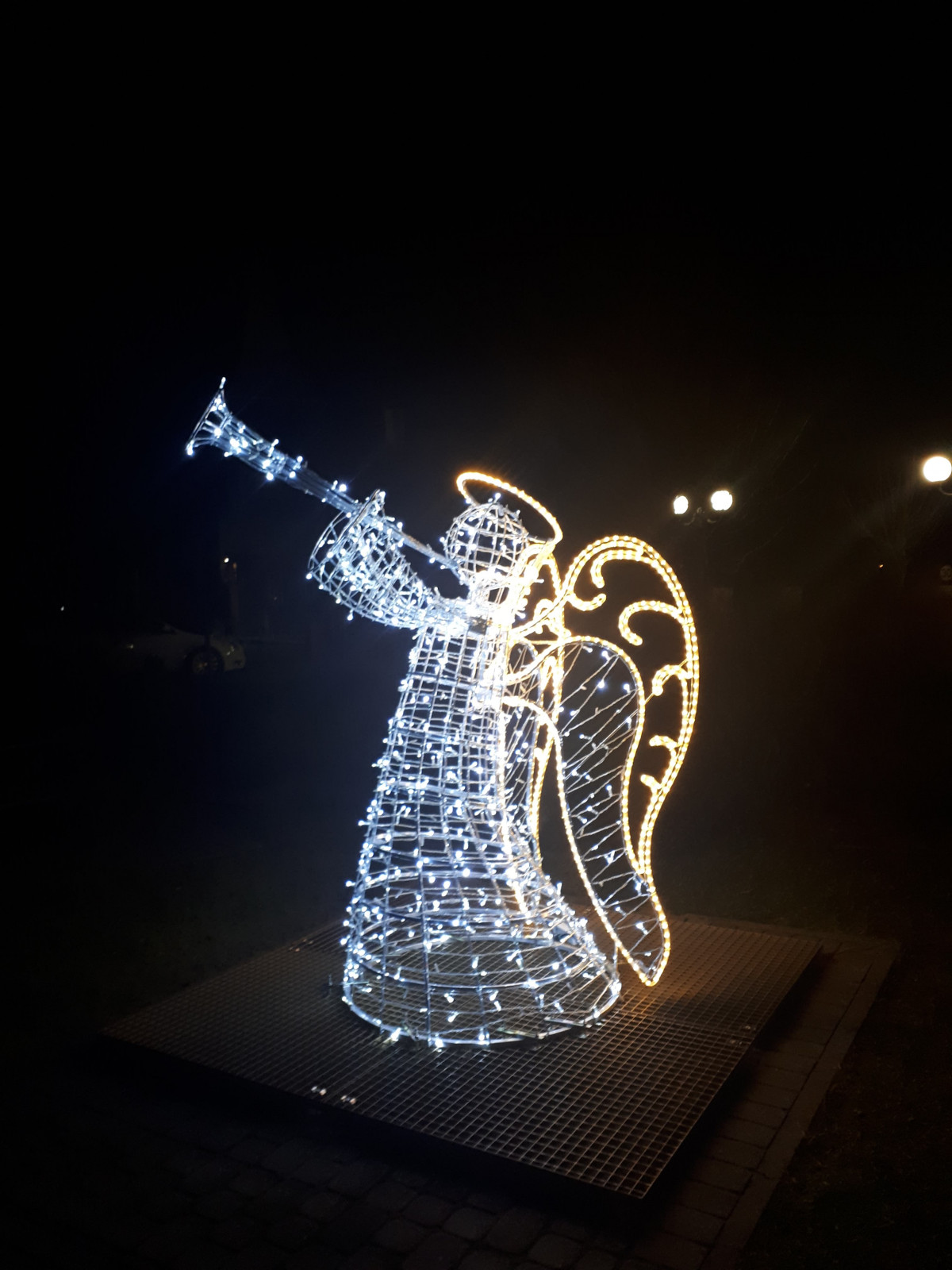 21 grudnia br. w ramach nawiązanej współpracy Gminnego Ośrodka Kultury w Komańczy z firmą Budimex na skwerek w Rzepedzi i Komańczy zawitały dwa wzniosłe anioły, które rozbłysnęły światłem i dodały uroku świątecznego w gminie Komańcza. W związku ze zbliżającymi się Świętami Bożego Narodzenia, anioły wraz z najszczerszymi życzeniami zostały ufundowane dla mieszkańców, przez wykonującą na tym terenie inwestycje firmę Budimex. Grające na trąbach anioły pięknie wkomponowały się w aranżację Rzepedzkiego Amfiteatru, a także skwerku w Komańczy i będą umilać wszystkim świąteczny czas. Mamy nadzieję, że dostarczą choć odrobinkę radości i wywołają uśmiech na twarzach.