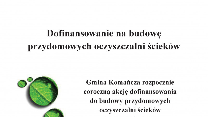Gmina Komańcza rozpocznie coroczną akcję dofinansowania do budowy przydomowych oczyszczalni ścieków dla mieszkańców.