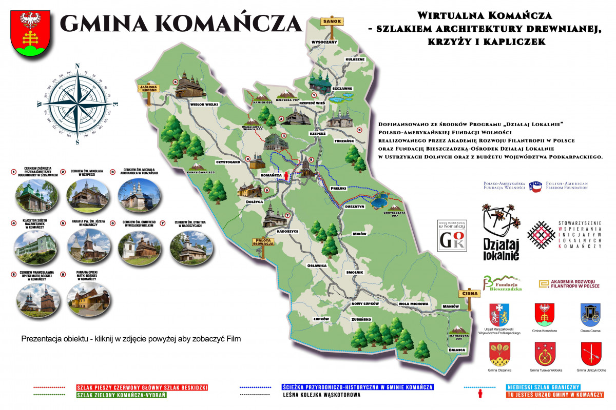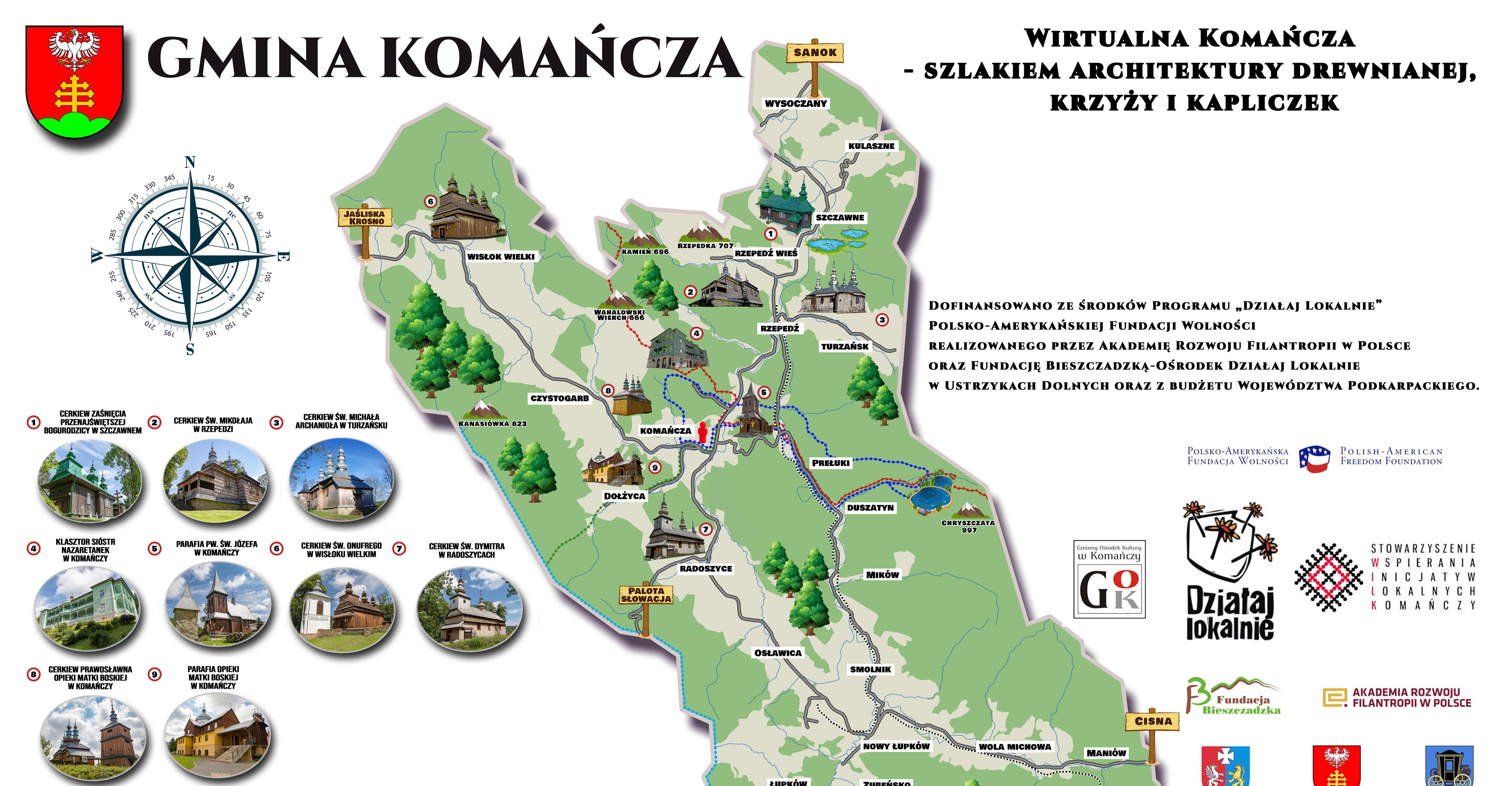 Podsumowaniem realizacji projektu było przygotowanie wirtualnego spaceru po zabytkach drewnianych, krzyżach i kapliczkach, który stanowi sporą dawkę wiedzy historycznej dla mieszkańców oraz odwiedzających gminę turystów. „WIRTUALNEJ KOMAŃCZY- szlakiem architektury drewnianej, krzyży i kapliczek” nie udało by nam się opracować, gdyby nie wkład wielu osób, a mowa o: p. Grzegorzu Biedze, który nagrał filmiki oraz przygotował galerię zdjęć zabytków i infrastruktury przydrożnej, jak: cerkwi, kościołów, klasztoru, cmentarzy, krzyży i kapliczek itp., dr Joanny Potaczek, wygłaszającej prelekcje o architekturze drewnianej w gminie Komańcza oraz informatykowi UG Komańcza, który wspierał nas swoim fachowym doradztwem przy wyemitowaniu filmów. W rezultacie udało się przygotować 9 filmików o: Cerkwi prawosławnej pw. Opieki Matki Bożej w Komańczy, Cerkwi prawosławnej pw. św. Michała Archanioła w Turzańsku, Cerkwi prawosławnej pw. Zaśnięcia Matki Bożej w Szczawnem, Kościele Rzymskokatolickim pw. św. Józefa w Komańczy, Cerkwi greckokatolickiej pw. Opieki Matki Bożej w Komańczy, Cerkwi św. Mikołaja Cudotwórcy w Rzepedzi Wsi, Klasztorze Zgromadzenia Sióstr Najświętszej Rodziny z Nazaretu w Komańczy, Cerkwi pw. św. Dymitra w Radoszycach i Cerkwi pw. św. Onufrego w Wisłoku Wielkim do których oglądania gorąco zachęcamy.