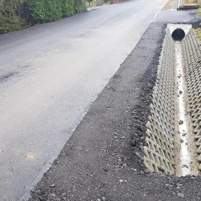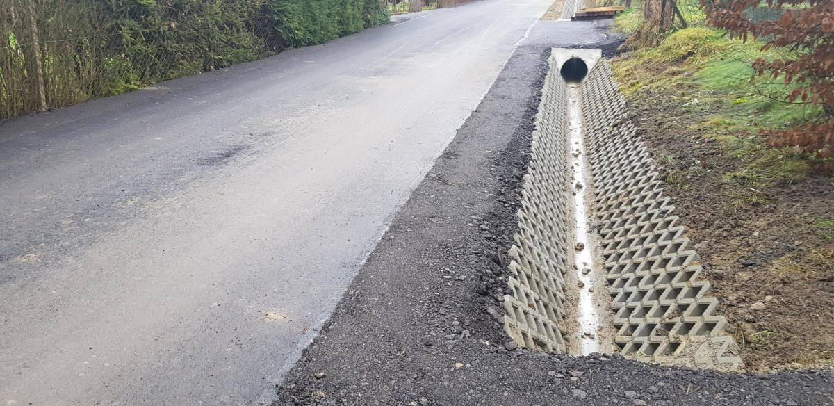 - wykonanie ścieku drogowego o grubości 15cm – 38m