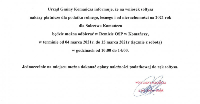 Jednocześnie na miejscu można dokonać opłaty należności podatkowej do rąk sołtysa.