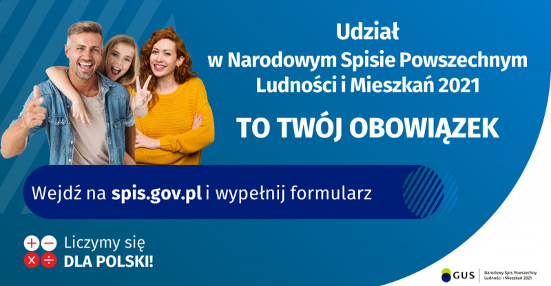 W związku z rozpoczęciem Narodowego Spisu Powszechnego Ludności i Mieszkań 2021 i jego wydłużeniem do 30 września br. uprzejmie informujemy, że podstawową metodą realizacji obowiązku spisowego jest samospis poprzez aplikację: kliknij tutaj