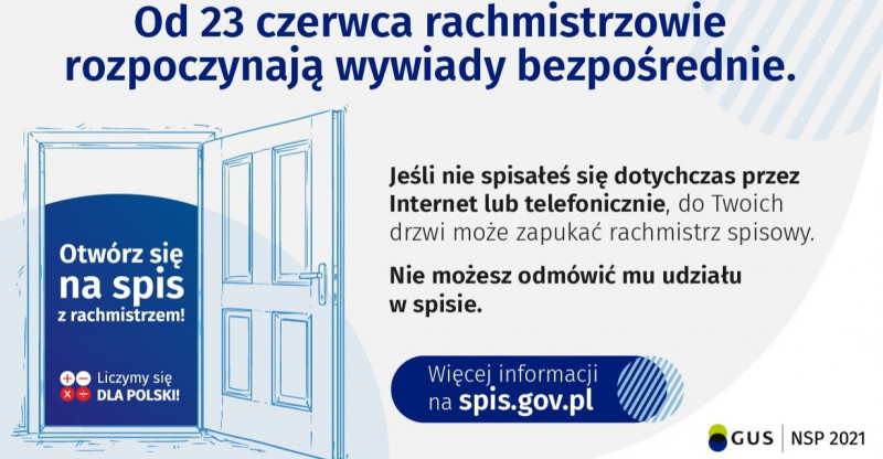Od 23 czerwca br. rachmistrzowie spisowi rozpoczynają realizację wywiadów bezpośrednich w terenie. Rachmistrzowie skontaktują się z osobami, które nie spisały się przez Internet, nie spisały się na infolinii (22 279 99 99) ani nie zadzwonił do nich rachmistrz spisowy.