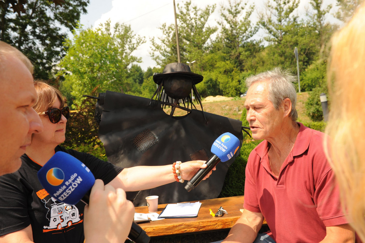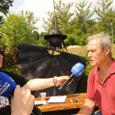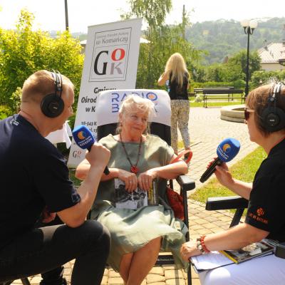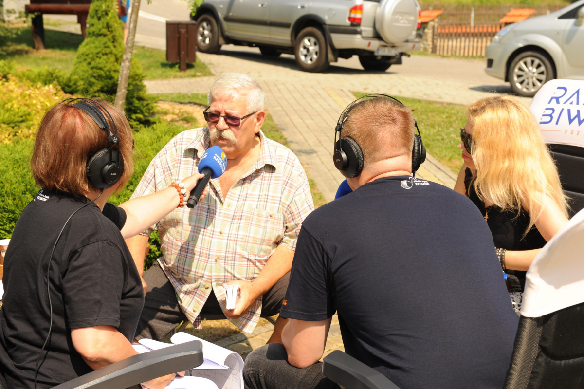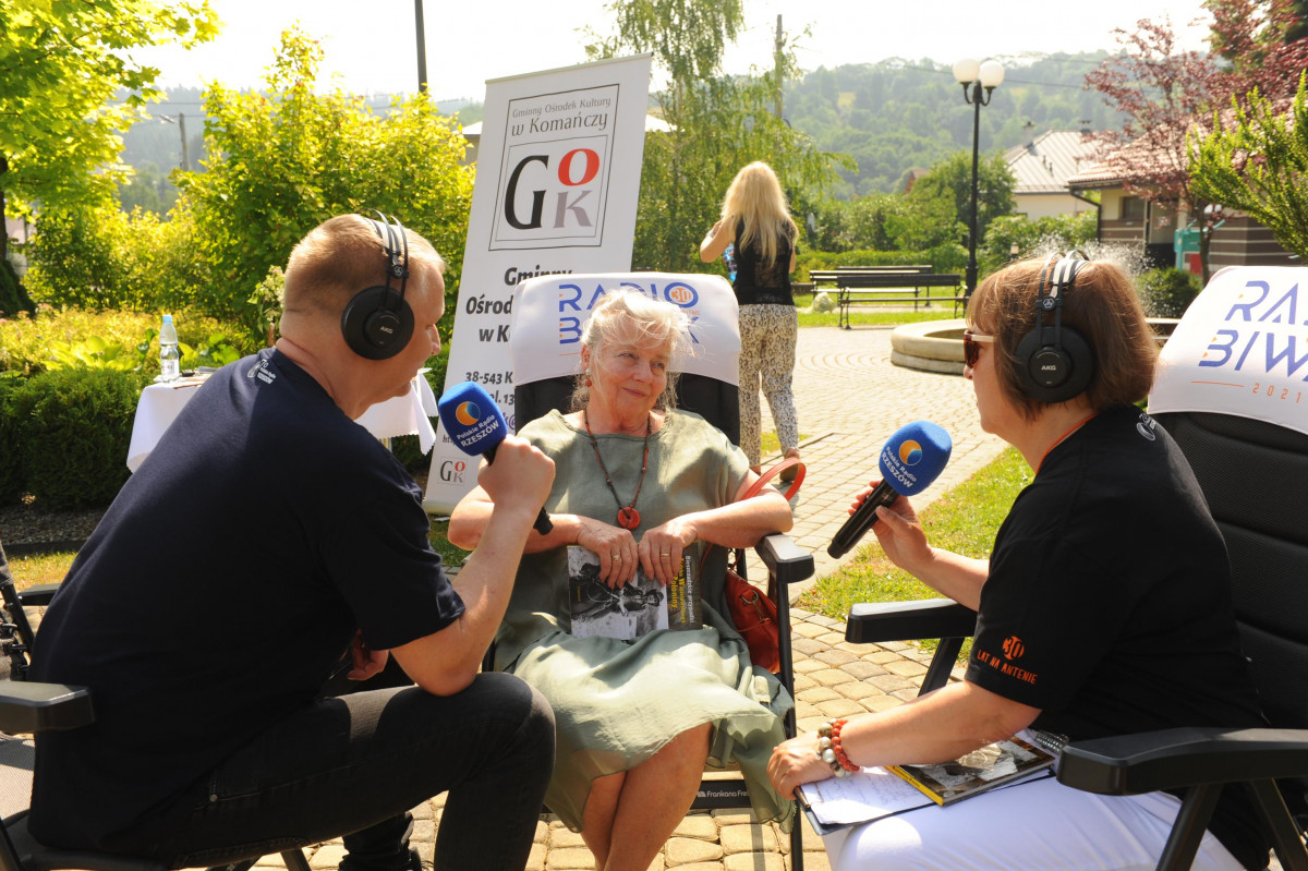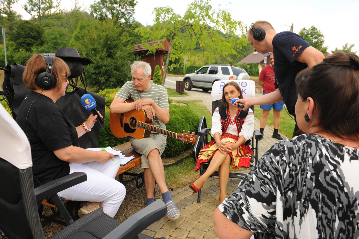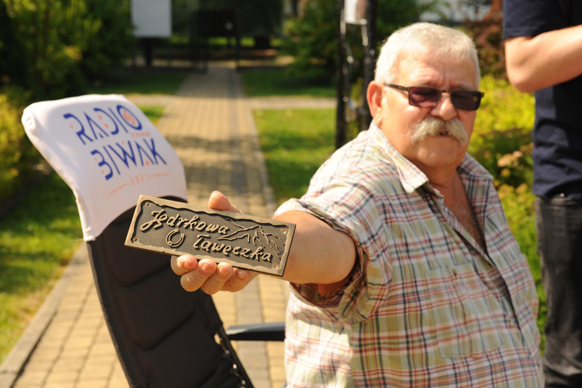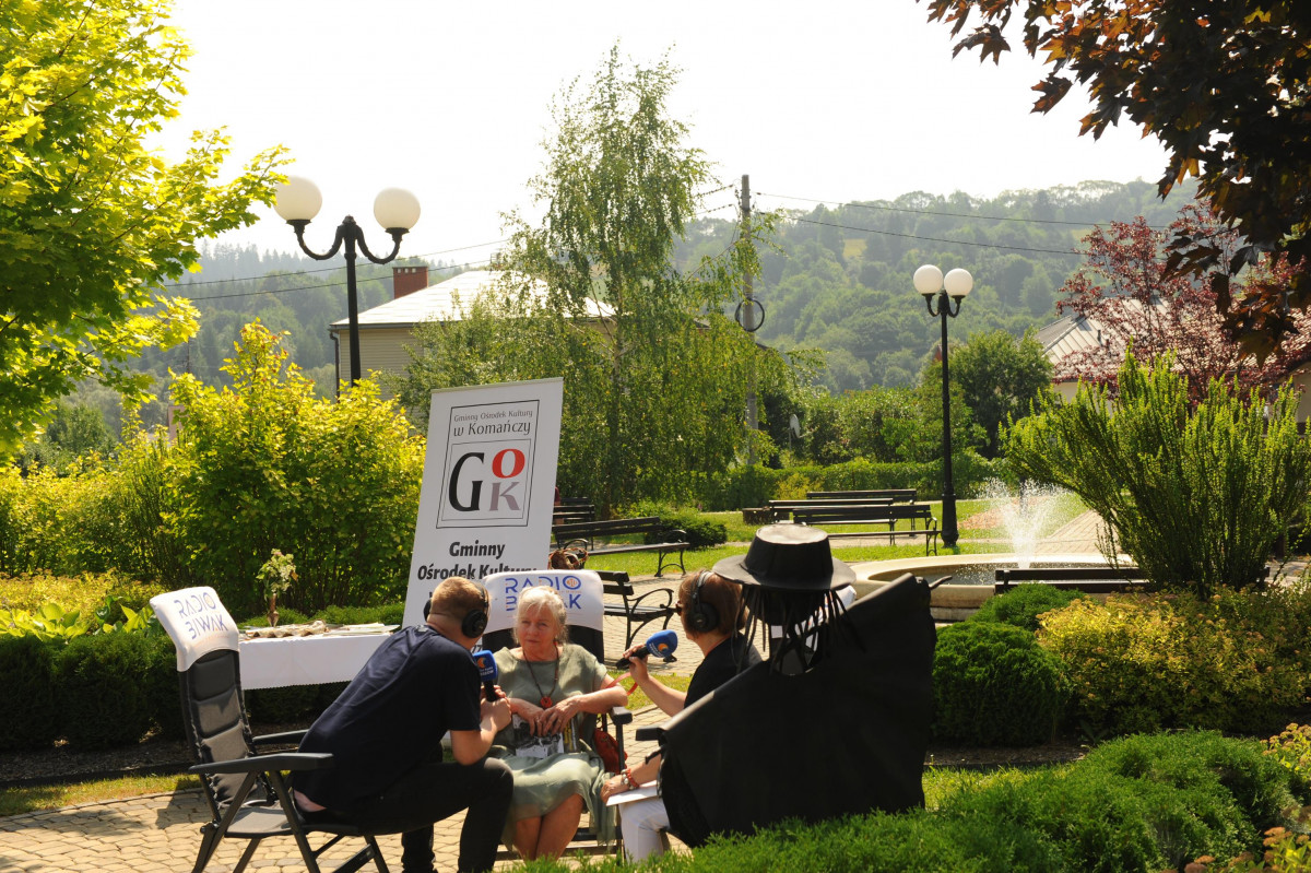 Przemiłą niespodzianką poprzedzającą Jędrusiowy Złaz w Komańczy okazała się wizyta Radia Biwak, skąd ze skwerku w Komańczy nadawana była audycja. W trakcie programu na antenie Polskiego Radia Rzeszów posłuchać można było wspomnień o artyście i śpiewu harcerzy, którzy w tym czasie zwiedzali gminę Komańcza. Na przygotowanym stoisku zaprezentowane zostały rękodzieła inspirowane twórczością Jędrka Połoniny, obraz jego autorstwa przedstawiający starego skrzypka, który udało nam się użyczyć grzecznościowo od prywatnego właściciela. Swoje dzieła literackie i twórcze dla Jędrusia zaprezentował również p. Aleksander Jasicki. W trakcie audycji głos zabrali Przyjaciele Jędrka Połoniny – Andrzej Potocki, Ewa Baranowska oraz Ewa Wójciak, Roman Bzdyk Wójt Gminy Komańcza, Krystyna Galik-Harhaj, dyrektor GOK w Komańczy, dr Joanna Potaczek, Dorota Sawczyszyn oraz artysta Aleksander Jasicki. Audycję poprowadzili p. Iwona Piętak i Dawid Osysko.