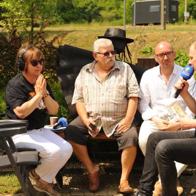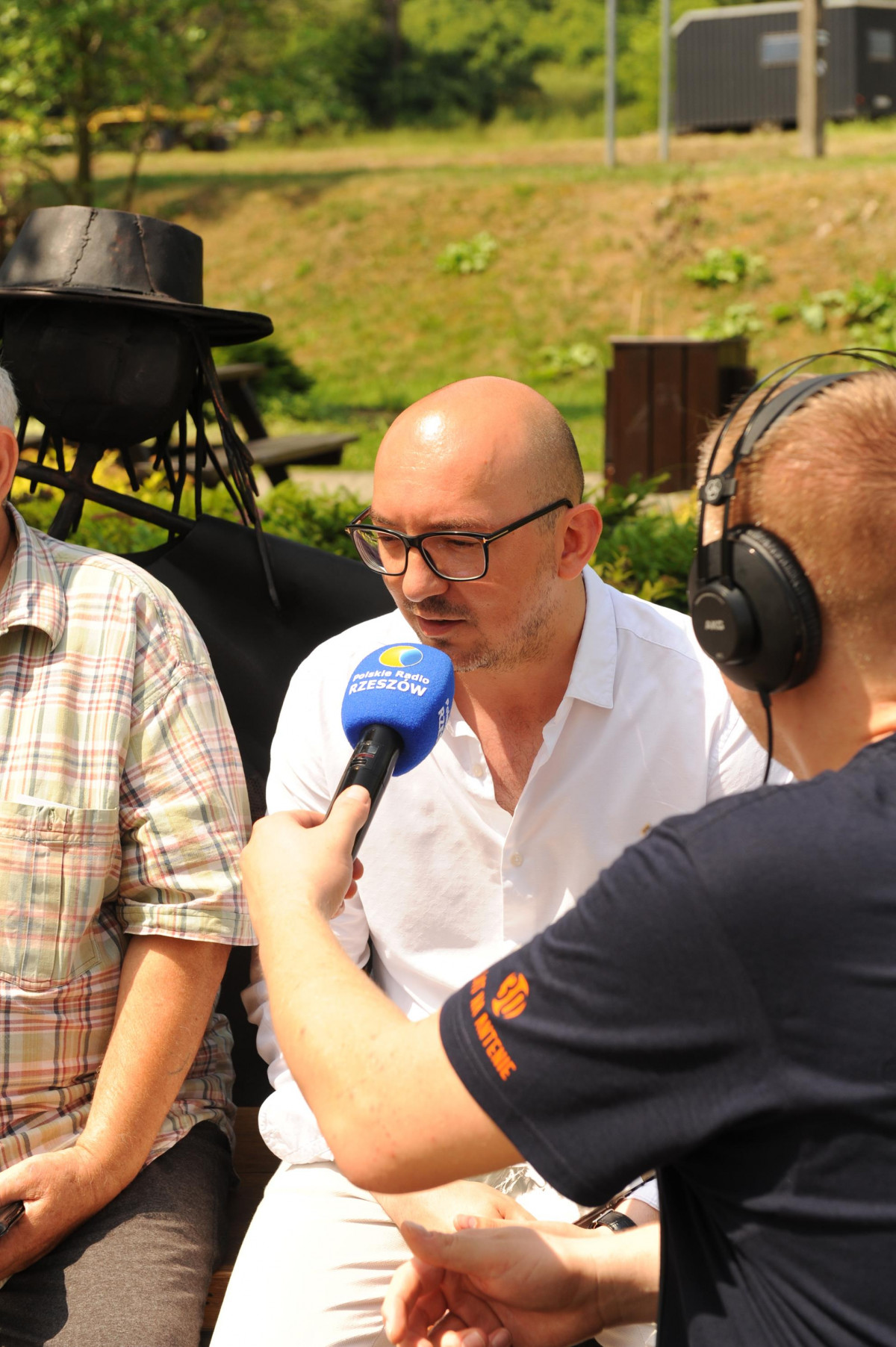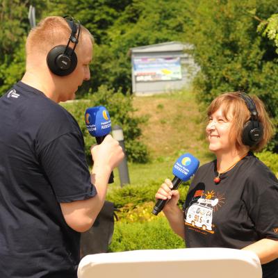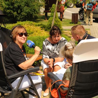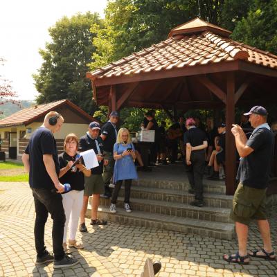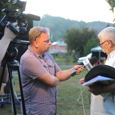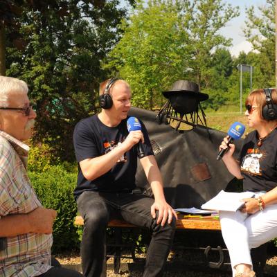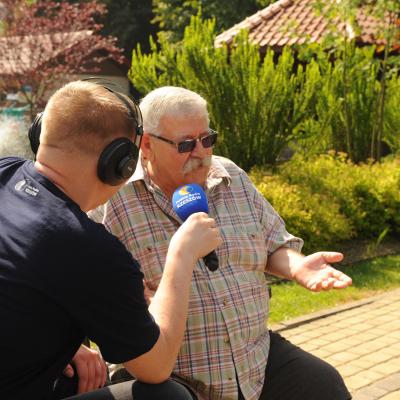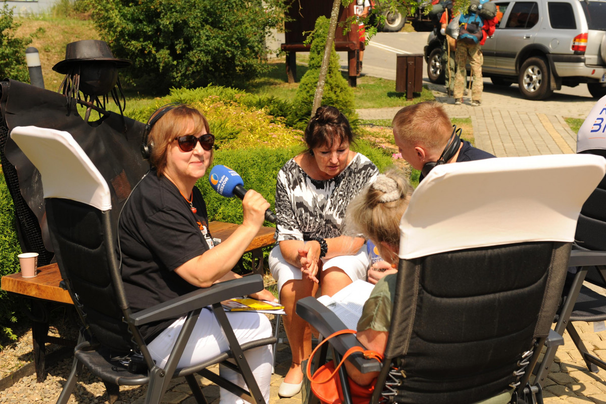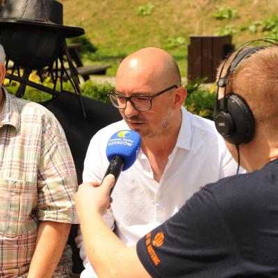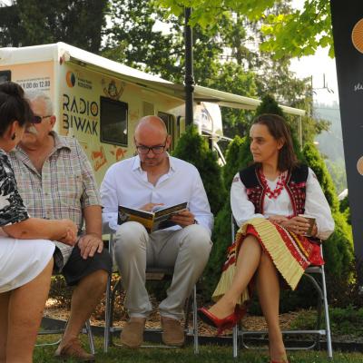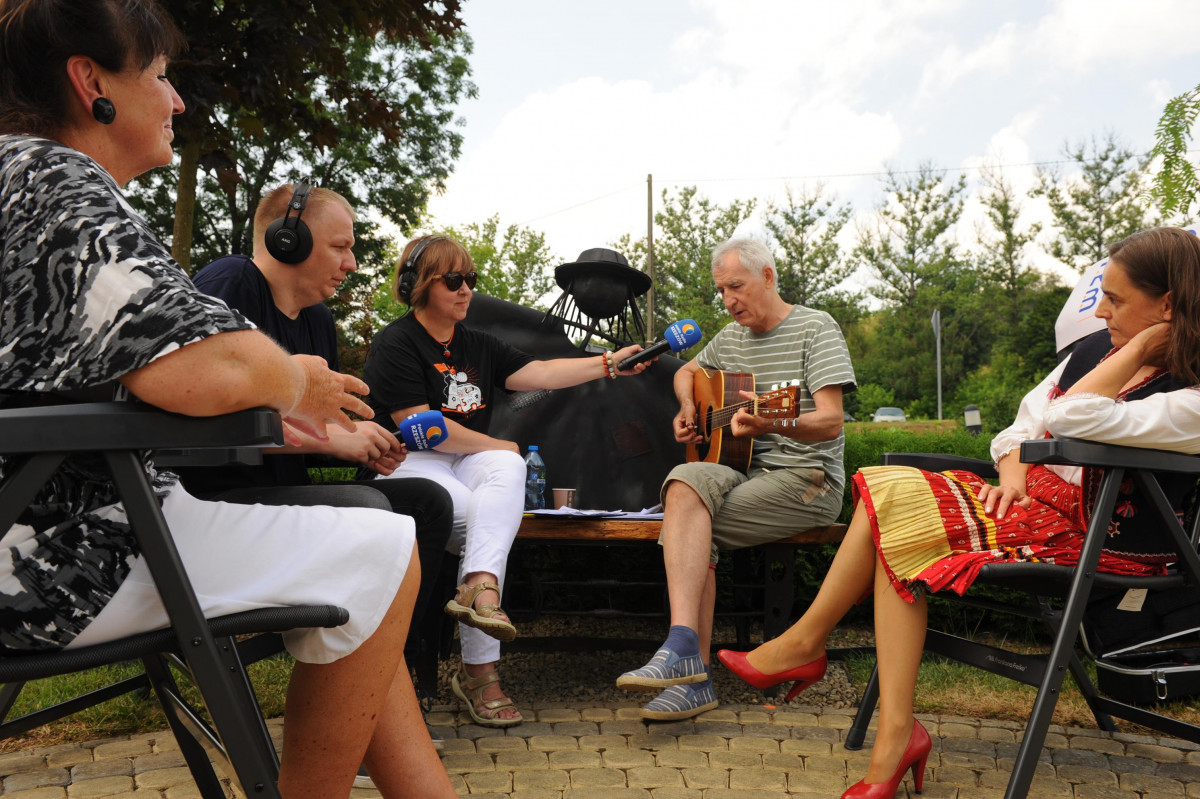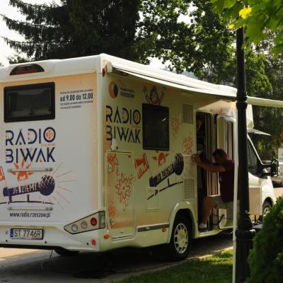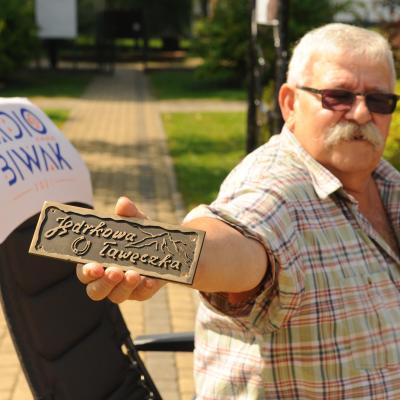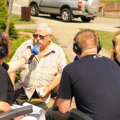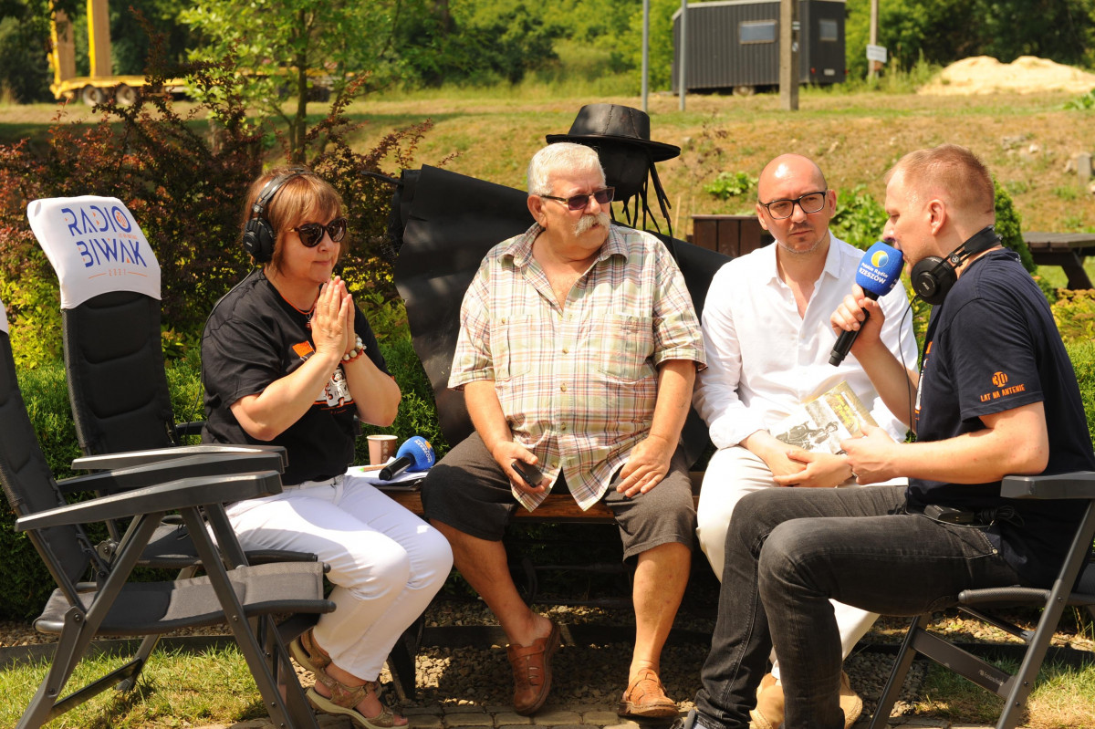 Przemiłą niespodzianką poprzedzającą Jędrusiowy Złaz w Komańczy okazała się wizyta Radia Biwak, skąd ze skwerku w Komańczy nadawana była audycja. W trakcie programu na antenie Polskiego Radia Rzeszów posłuchać można było wspomnień o artyście i śpiewu harcerzy, którzy w tym czasie zwiedzali gminę Komańcza. Na przygotowanym stoisku zaprezentowane zostały rękodzieła inspirowane twórczością Jędrka Połoniny, obraz jego autorstwa przedstawiający starego skrzypka, który udało nam się użyczyć grzecznościowo od prywatnego właściciela. Swoje dzieła literackie i twórcze dla Jędrusia zaprezentował również p. Aleksander Jasicki. W trakcie audycji głos zabrali Przyjaciele Jędrka Połoniny – Andrzej Potocki, Ewa Baranowska oraz Ewa Wójciak, Roman Bzdyk Wójt Gminy Komańcza, Krystyna Galik-Harhaj, dyrektor GOK w Komańczy, dr Joanna Potaczek, Dorota Sawczyszyn oraz artysta Aleksander Jasicki. Audycję poprowadzili p. Iwona Piętak i Dawid Osysko.