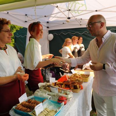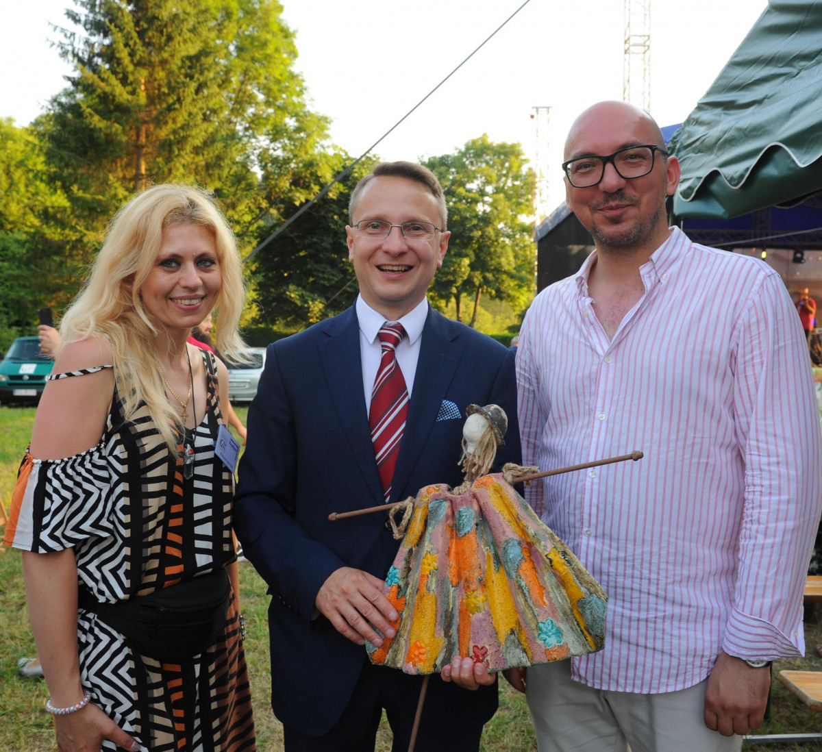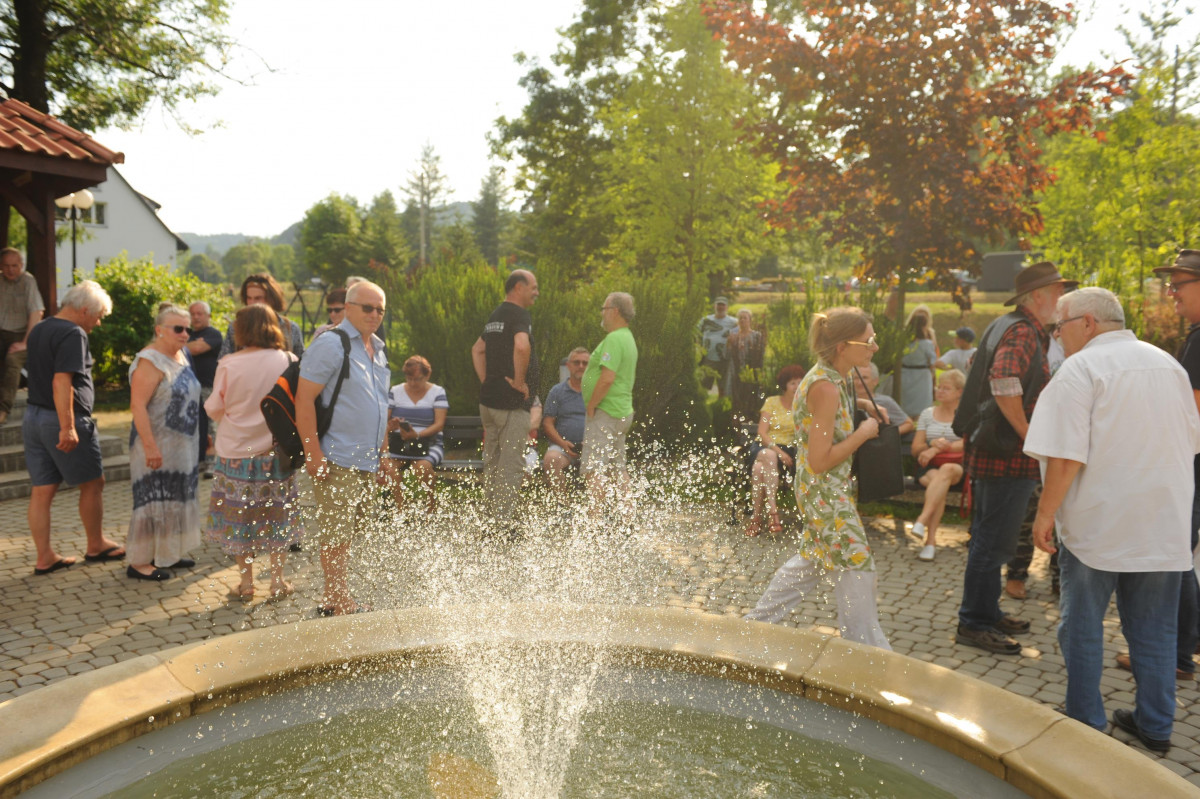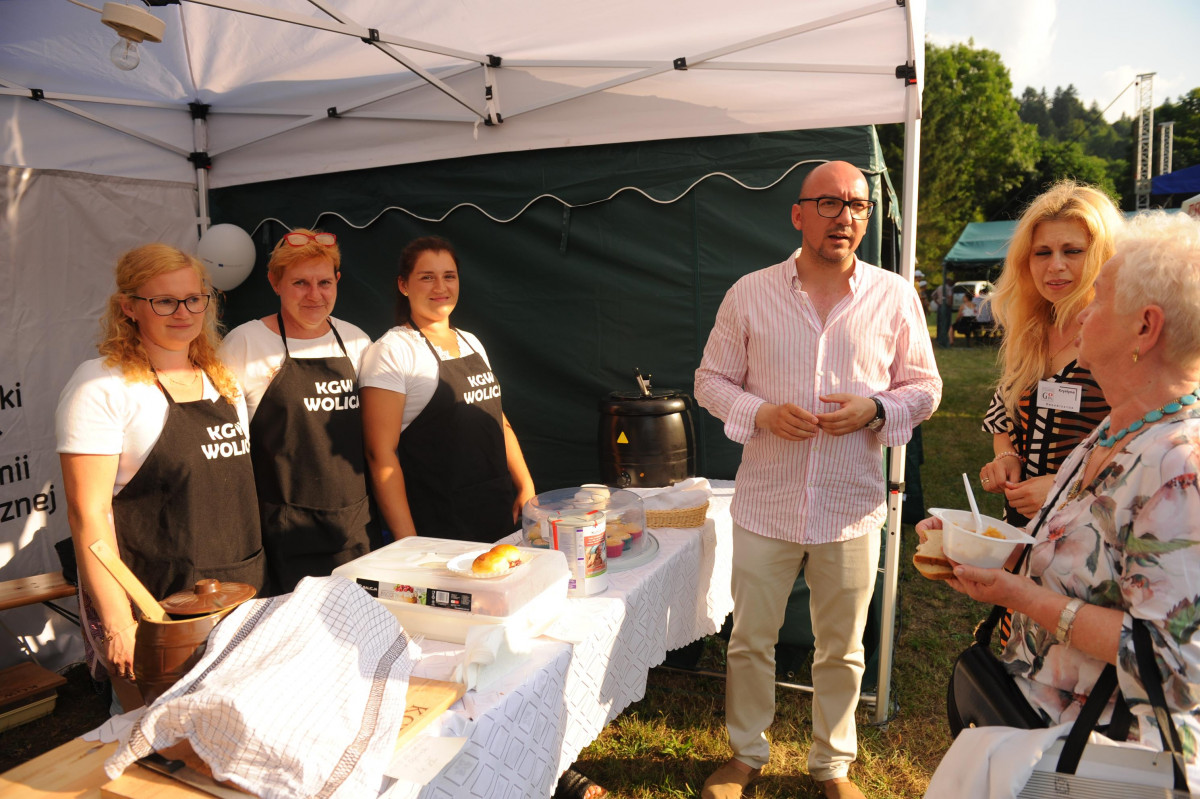 Po uroczystym odsłonięciu ławeczki nastąpiło oficjalne otwarcie imprezy, którego dokonali Roman Bzdyk Wójt Gminy Komańcza wraz z prowadzącą Ewą Baranowską. Gospodarz gminy powitał przybyłych gości i podziękował wszystkim uczestnikom w tym Kołom Gospodyń Wiejskich oraz rękodzielnikom za udział w imprezie. Kolejno na scenie zaprezentował się zespół „DRINK BAR”. Trzeba przyznać, że muzycy przygrywając kawałki country z łatwością porwali publiczność do wspólnej zabawy.