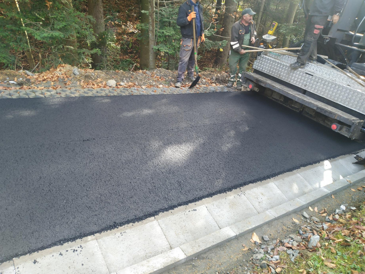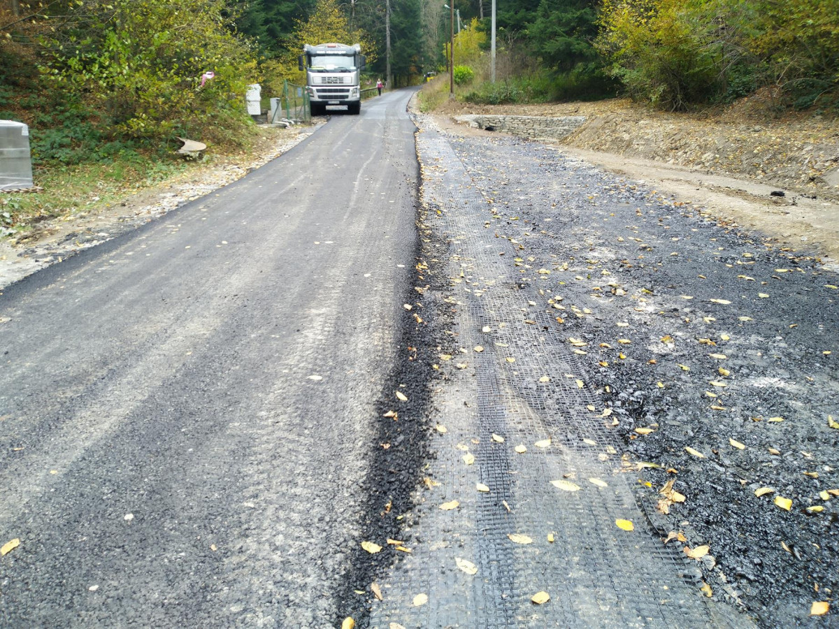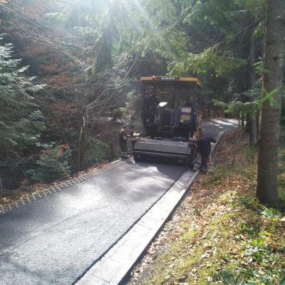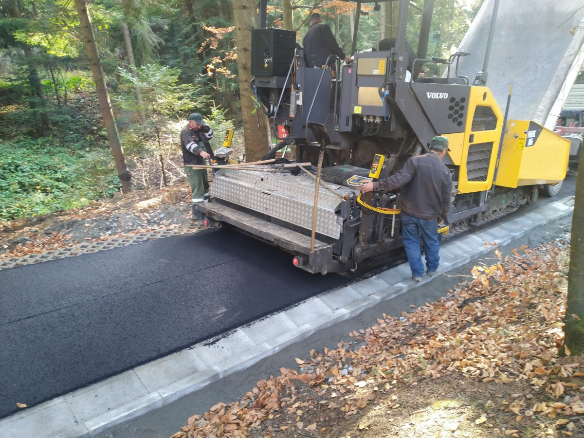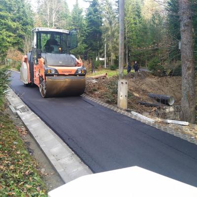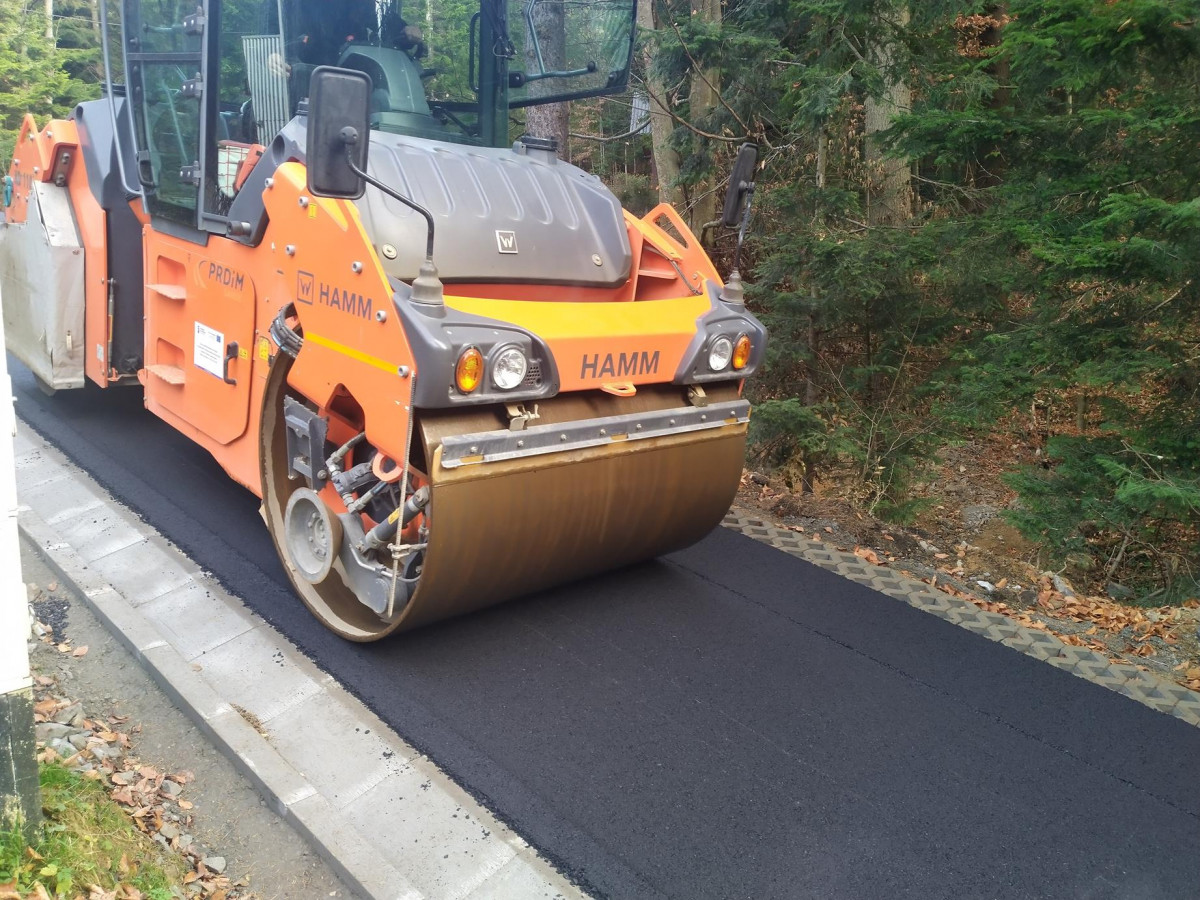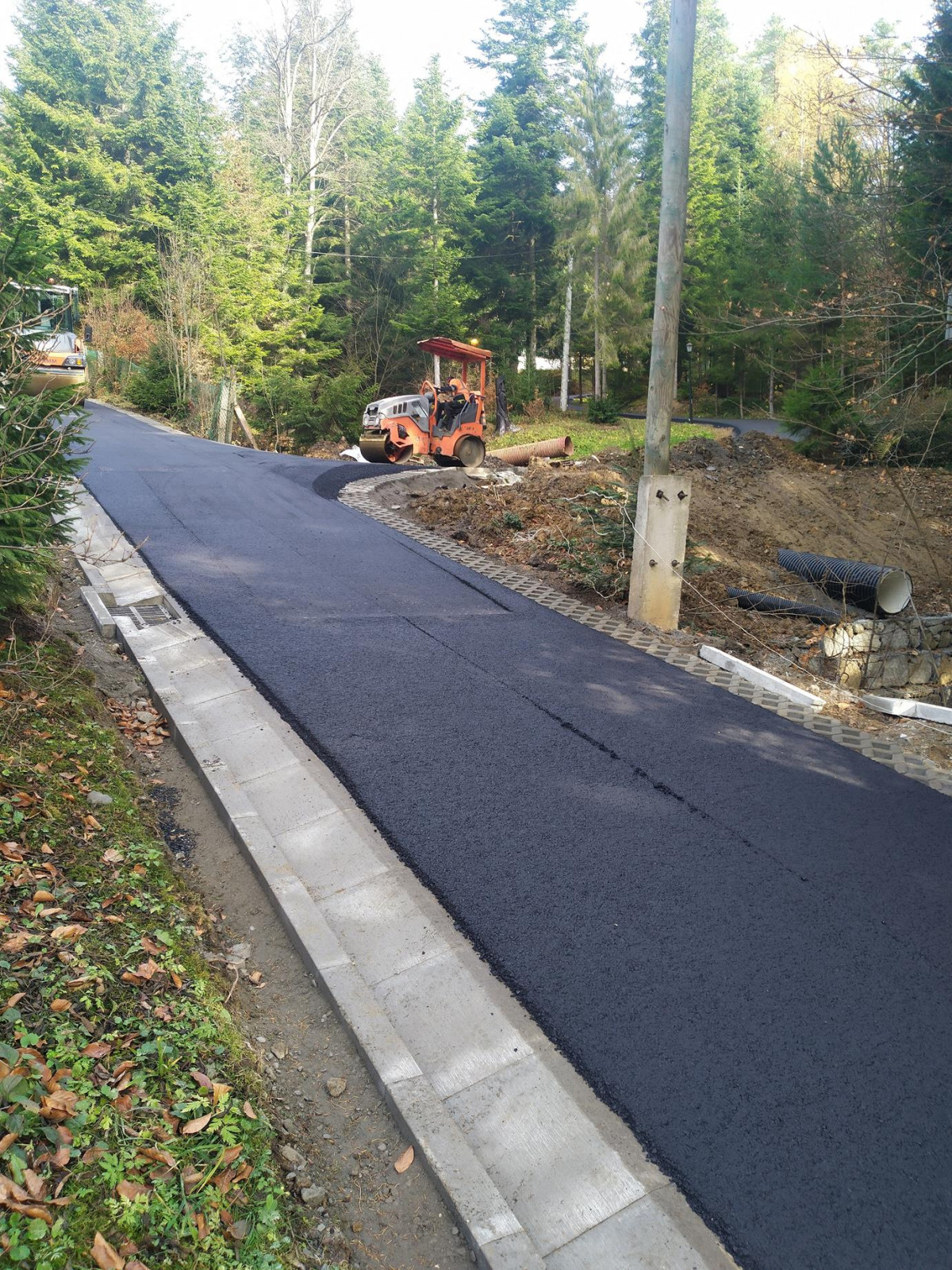 - Nawierzchnia z mieszanek mineralno – bitumicznych grysowych z warstwą ścieralną o grubości po zagęszczeniu 3cm – droga – 2300m2