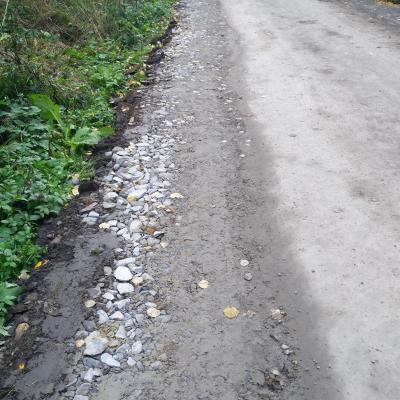 - Wyrównanie istniejącej podbudowy tłuczniem – zjazdy – 100m2