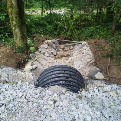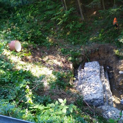 - Wykonanie narzutu kamiennego na wlotach i wylotach przepustów – 100m3