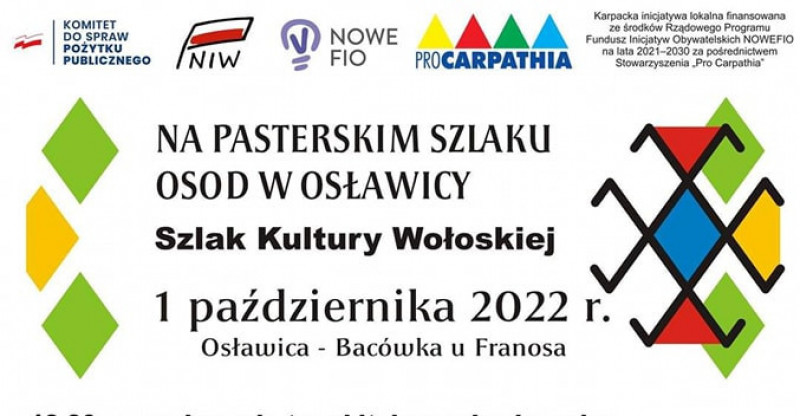 Zapraszamy serdecznie na SPOTKANIE NA PASTERSKIM SZLAKU OSOD W OSŁAWICY, SZLAK KULTURY WOŁOSKIEJ, które odbędzie się 1 października 2022 r. o godz. 13:30 w Osławicy przy Bacówce u FRANOSA.