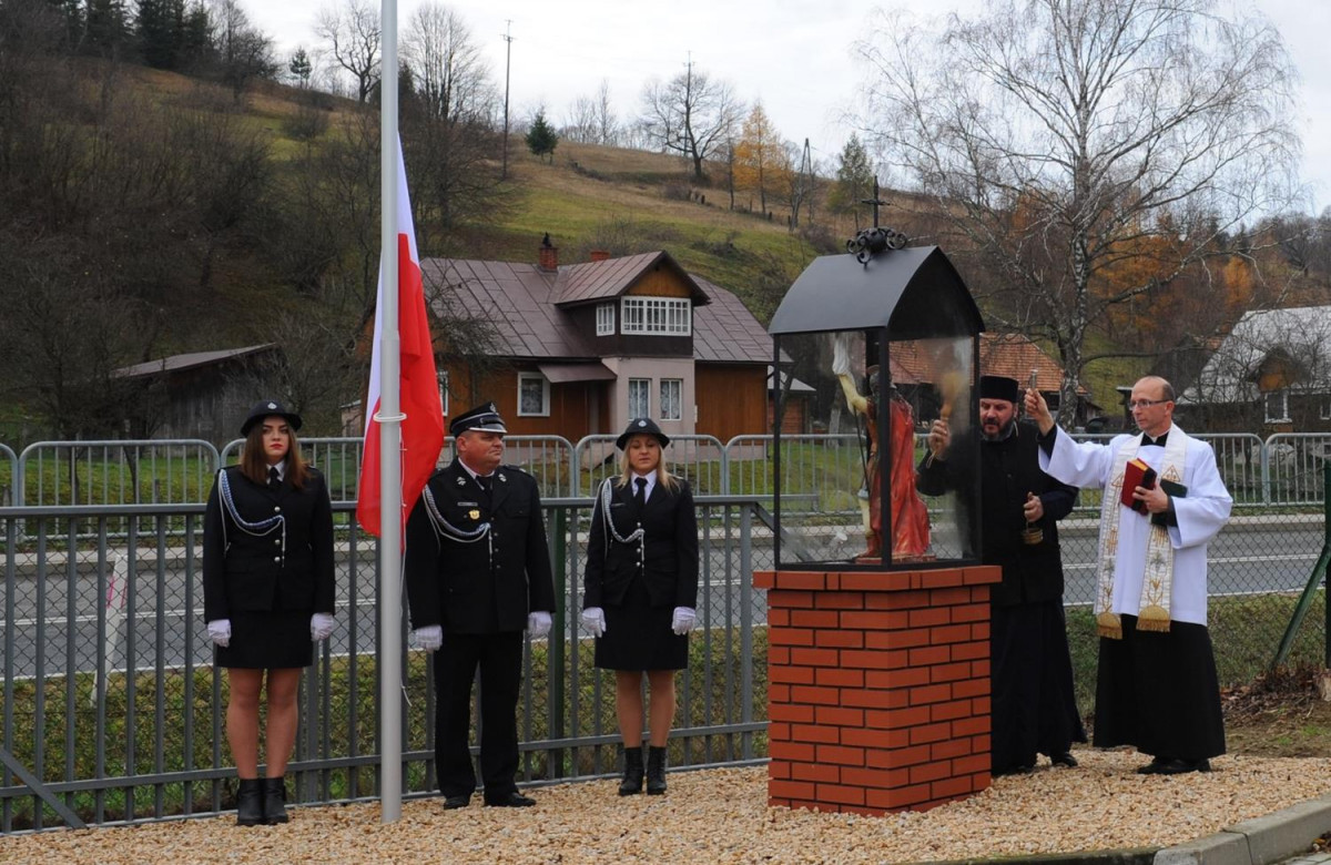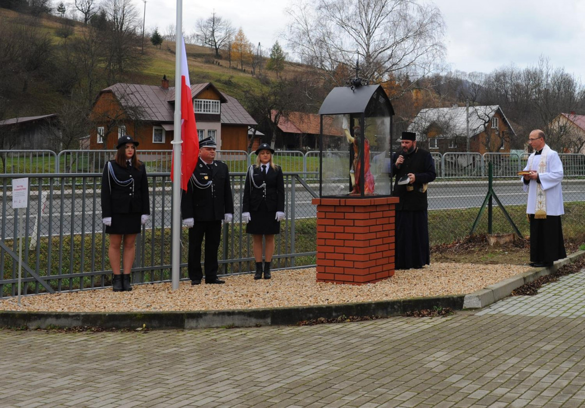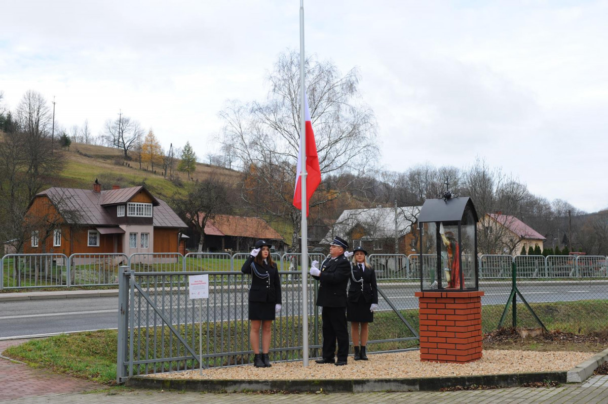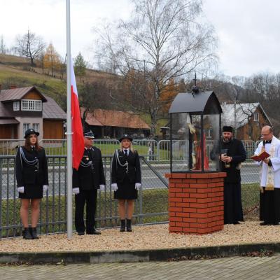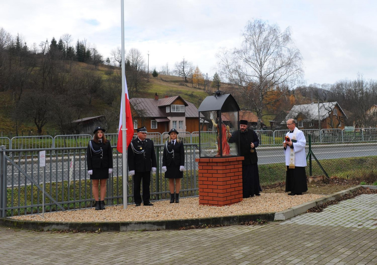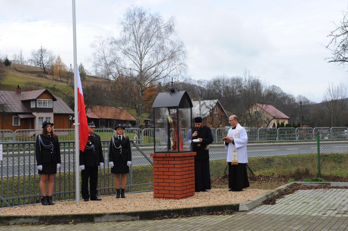 W kolejnej części uroczystości nastąpił przemarsz Pocztów Sztandarowych oraz uczestników obchodów gminnych pod Remizę OSP w Komańczy, gdzie miało miejsce uroczyste poświęcenie Kapliczki Św. Floriana wraz z wywieszeniem flagi Rzeczypospolitej Polskiej na Maszt. Poświęcenia kapliczki dokonali Ks. Marek Gocko i Ks. Adam Liwacz. Uroczystości 11 Listopada zakończono odegraniem Mazurka Dąbrowskiego i wywieszeniem flagi Rzeczypospolitej Polskiej na Maszt.