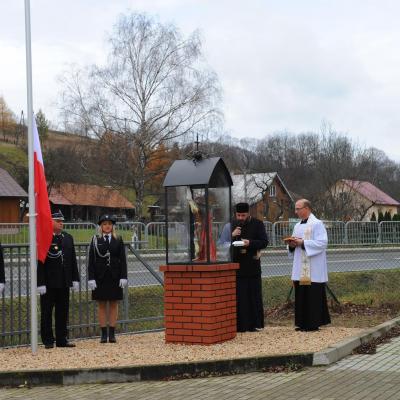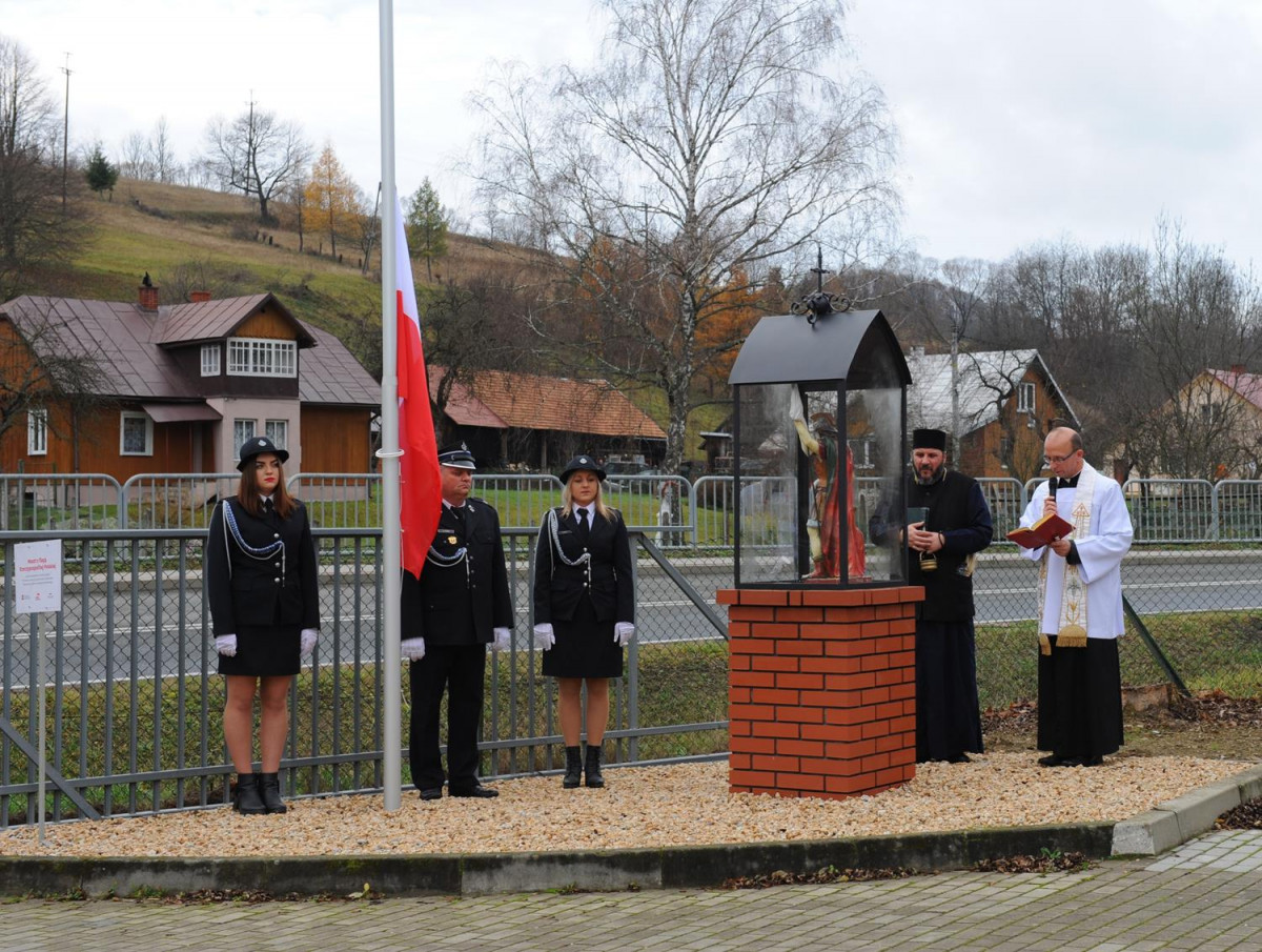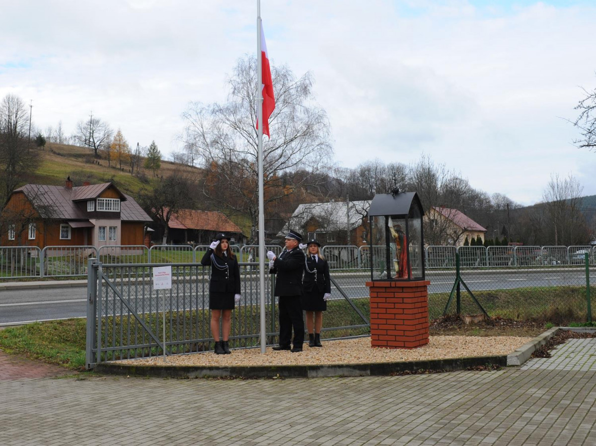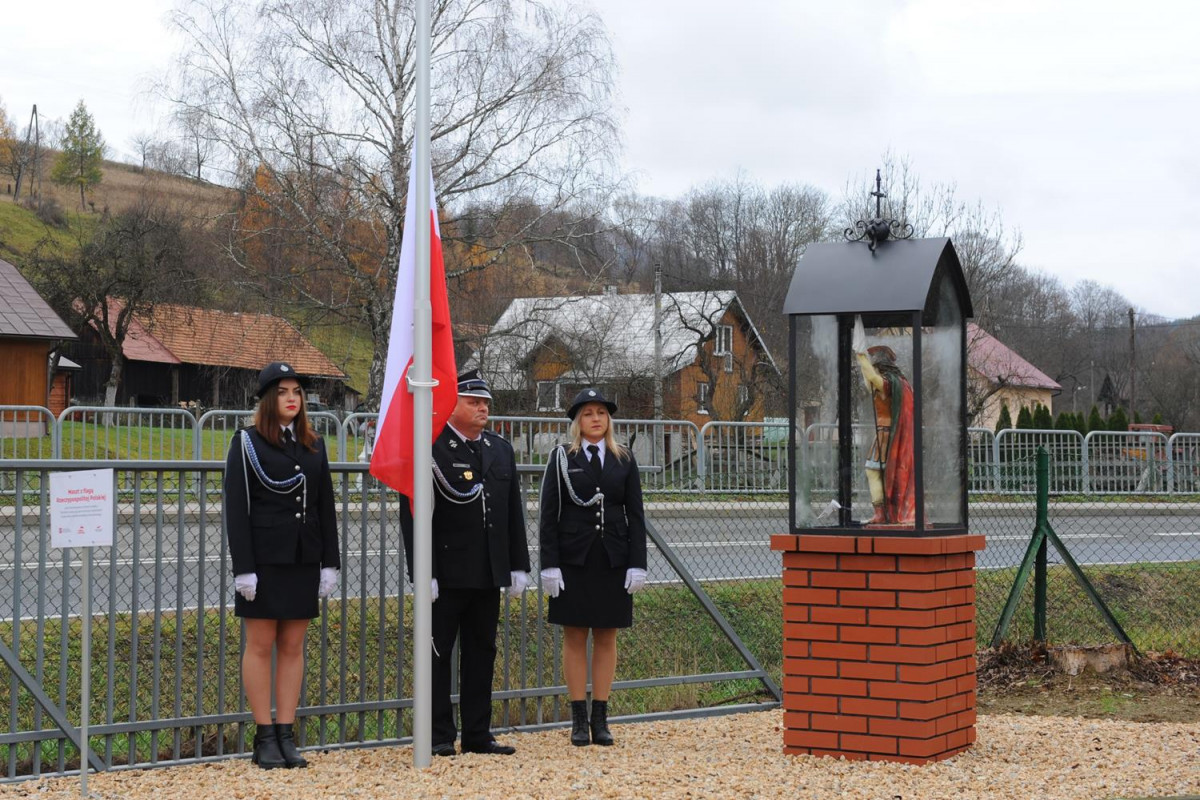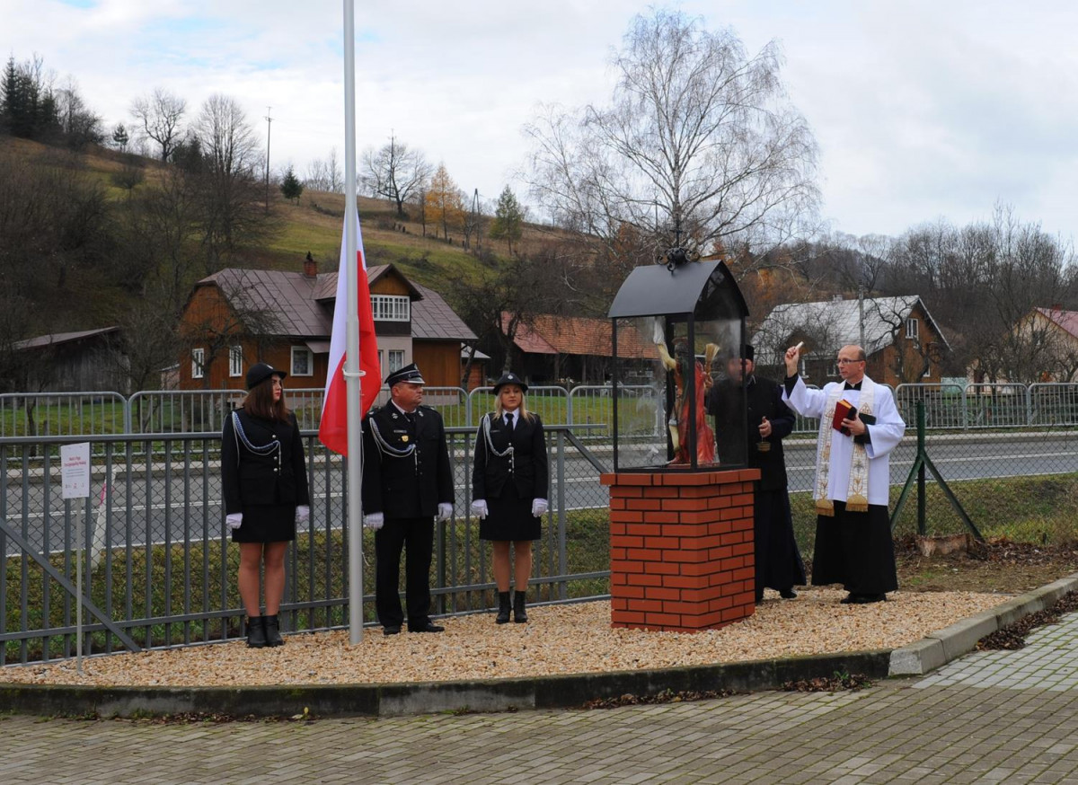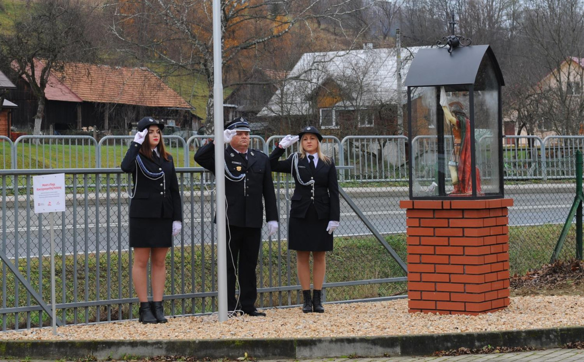 W kolejnej części uroczystości nastąpił przemarsz Pocztów Sztandarowych oraz uczestników obchodów gminnych pod Remizę OSP w Komańczy, gdzie miało miejsce uroczyste poświęcenie Kapliczki Św. Floriana wraz z wywieszeniem flagi Rzeczypospolitej Polskiej na Maszt. Poświęcenia kapliczki dokonali Ks. Marek Gocko i Ks. Adam Liwacz. Uroczystości 11 Listopada zakończono odegraniem Mazurka Dąbrowskiego i wywieszeniem flagi Rzeczypospolitej Polskiej na Maszt.