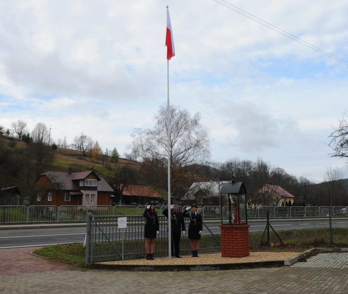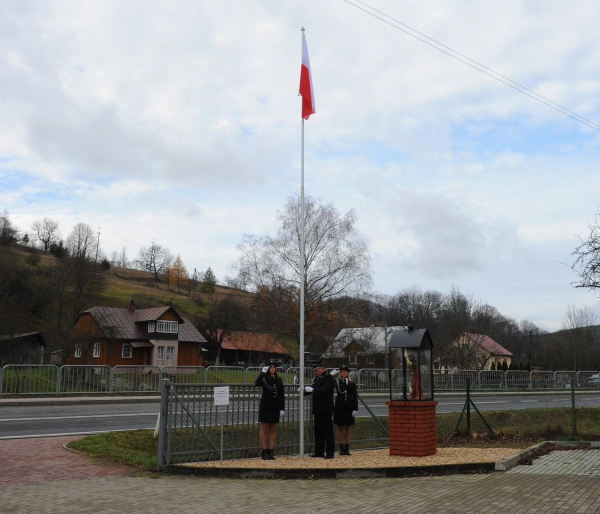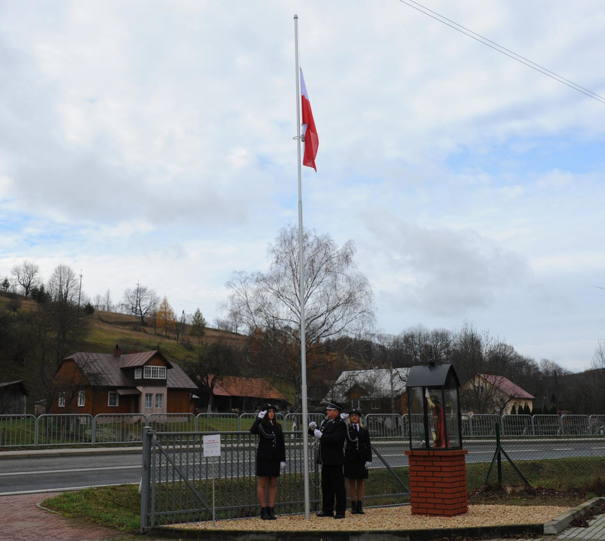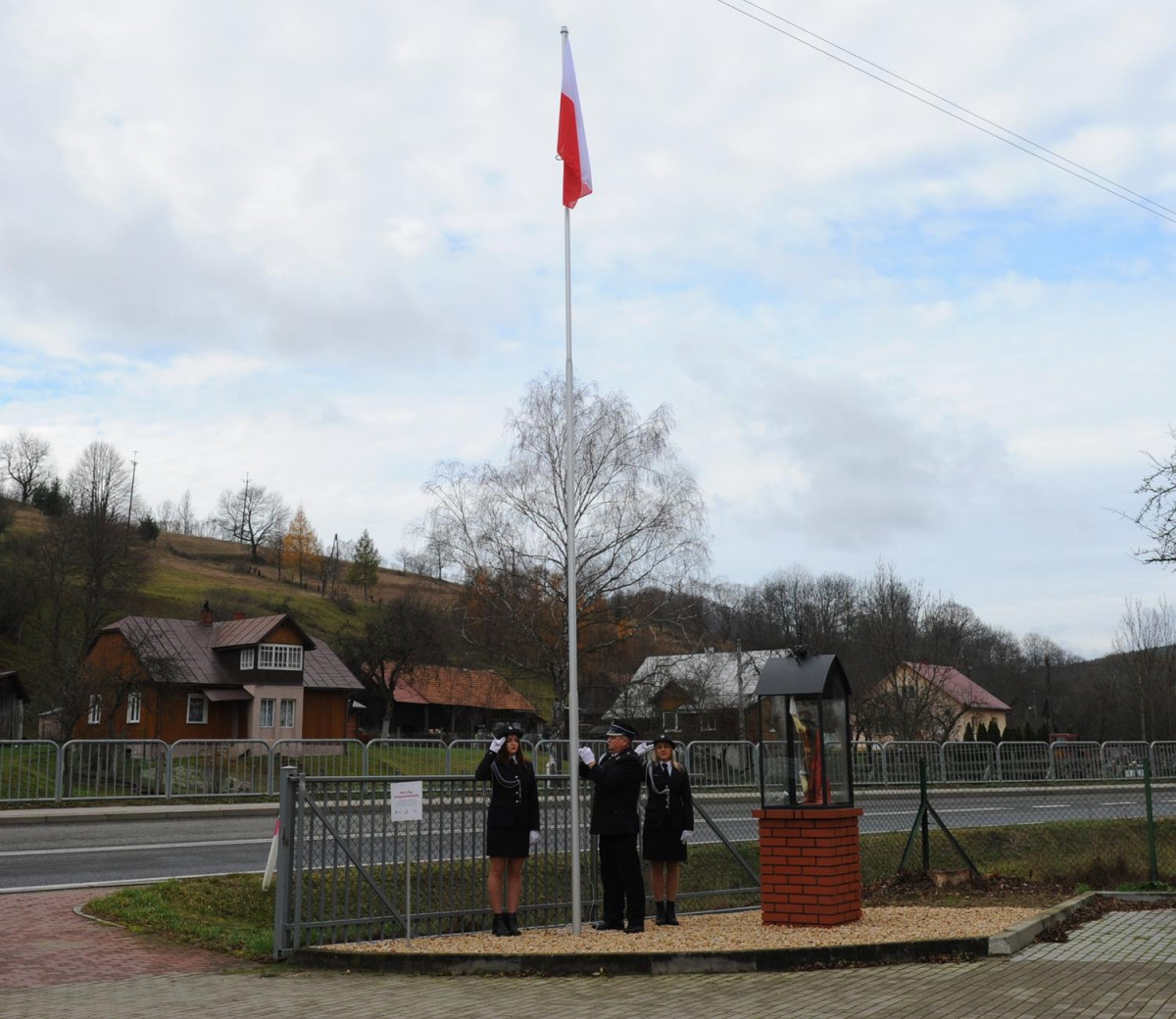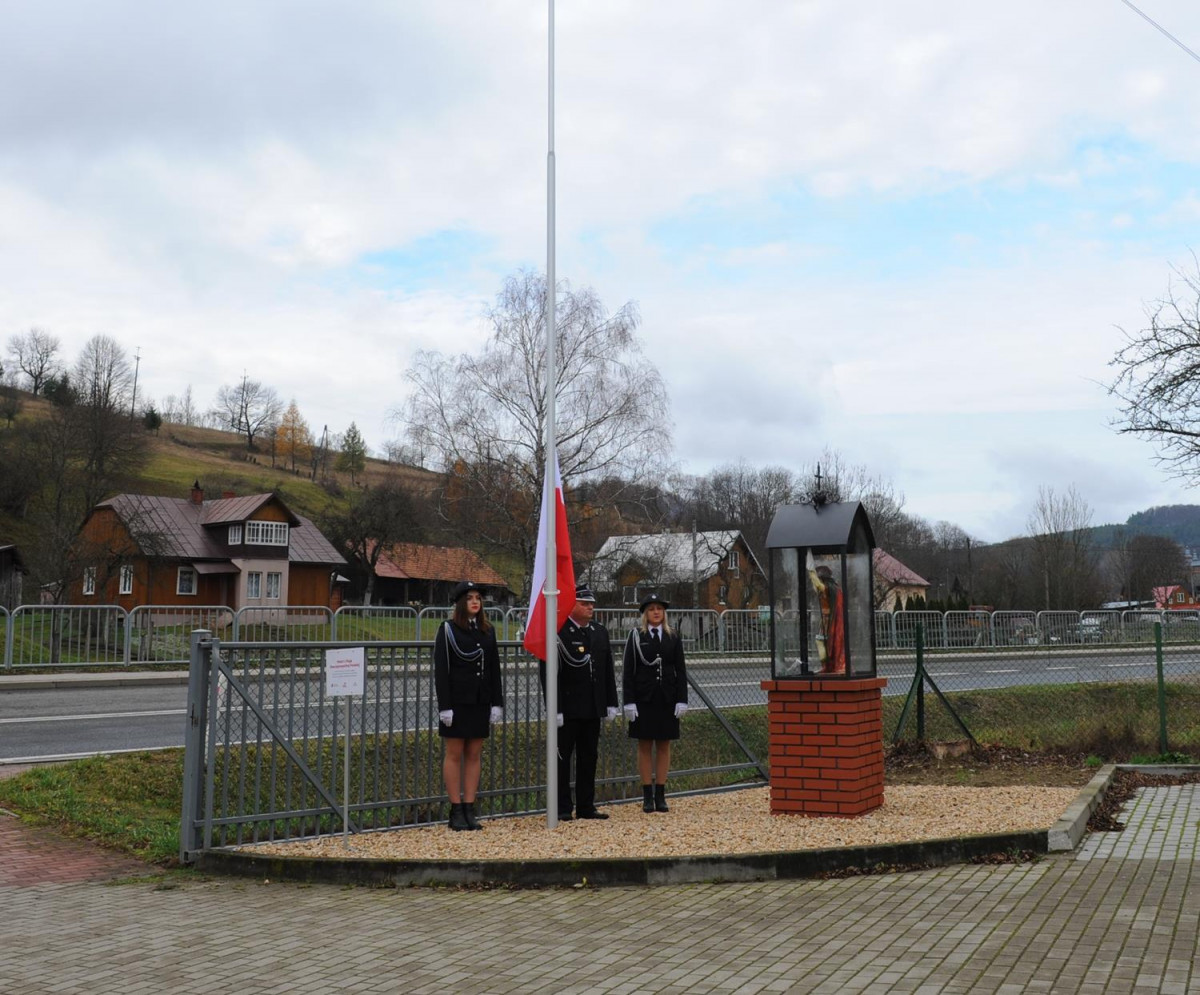 W kolejnej części uroczystości nastąpił przemarsz Pocztów Sztandarowych oraz uczestników obchodów gminnych pod Remizę OSP w Komańczy, gdzie miało miejsce uroczyste poświęcenie Kapliczki Św. Floriana wraz z wywieszeniem flagi Rzeczypospolitej Polskiej na Maszt. Poświęcenia kapliczki dokonali Ks. Marek Gocko i Ks. Adam Liwacz. Uroczystości 11 Listopada zakończono odegraniem Mazurka Dąbrowskiego i wywieszeniem flagi Rzeczypospolitej Polskiej na Maszt.