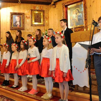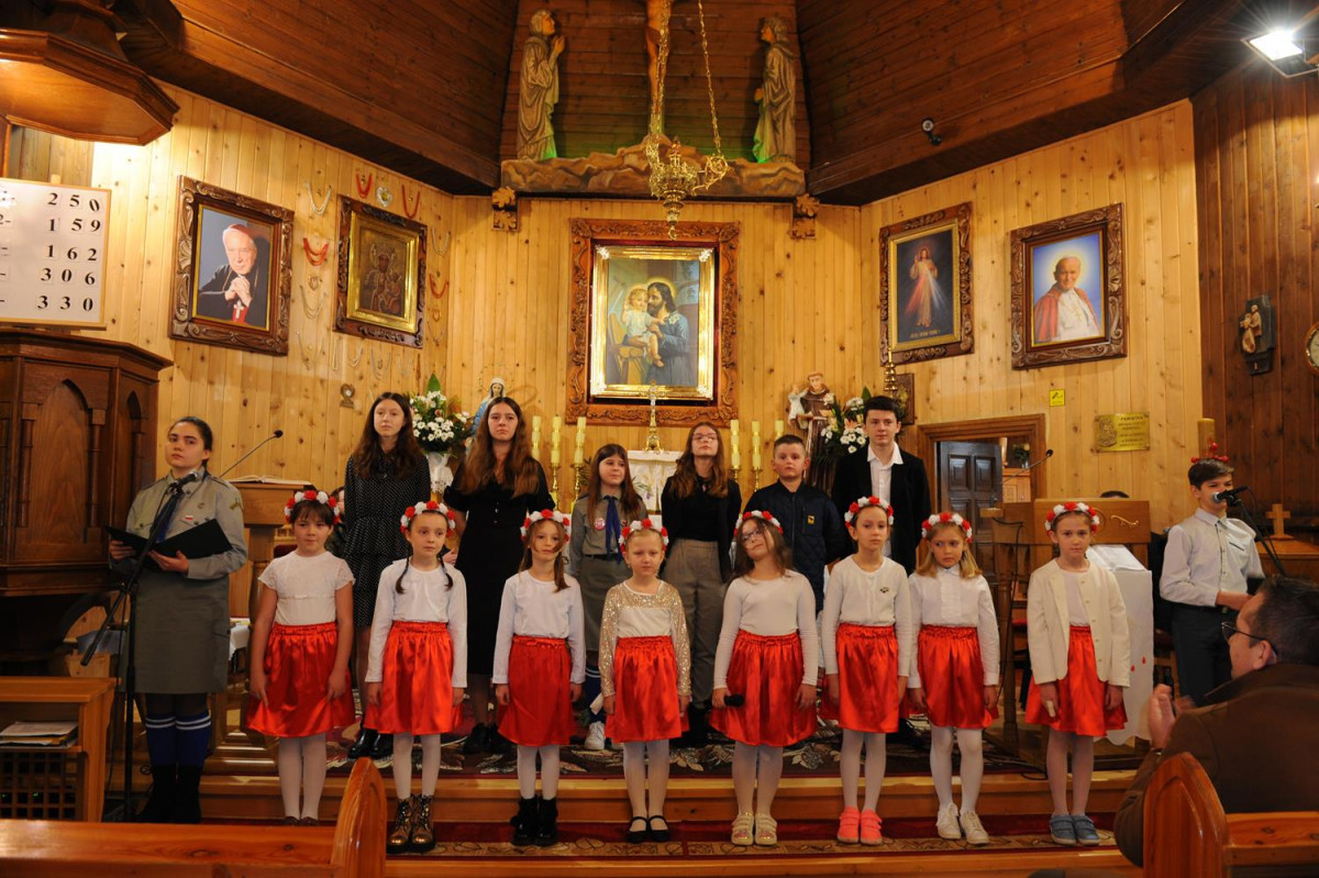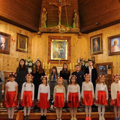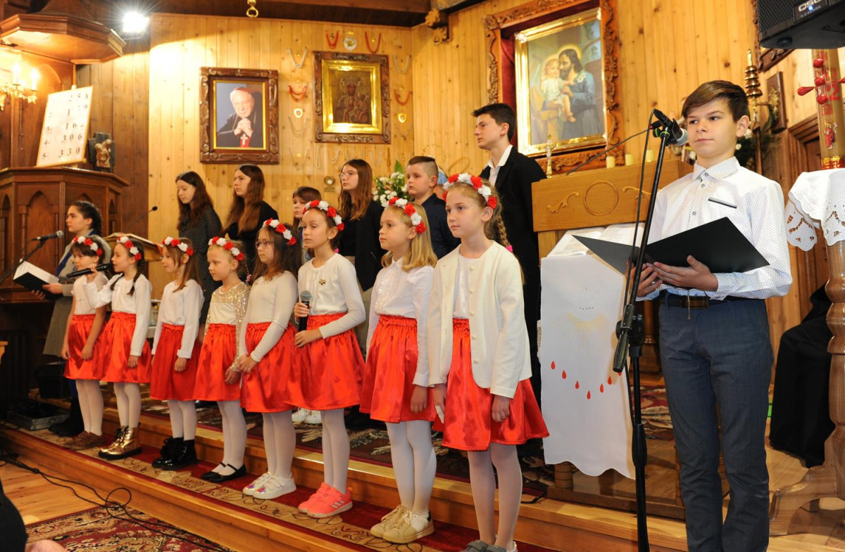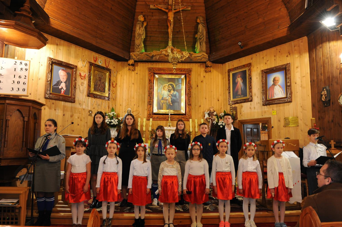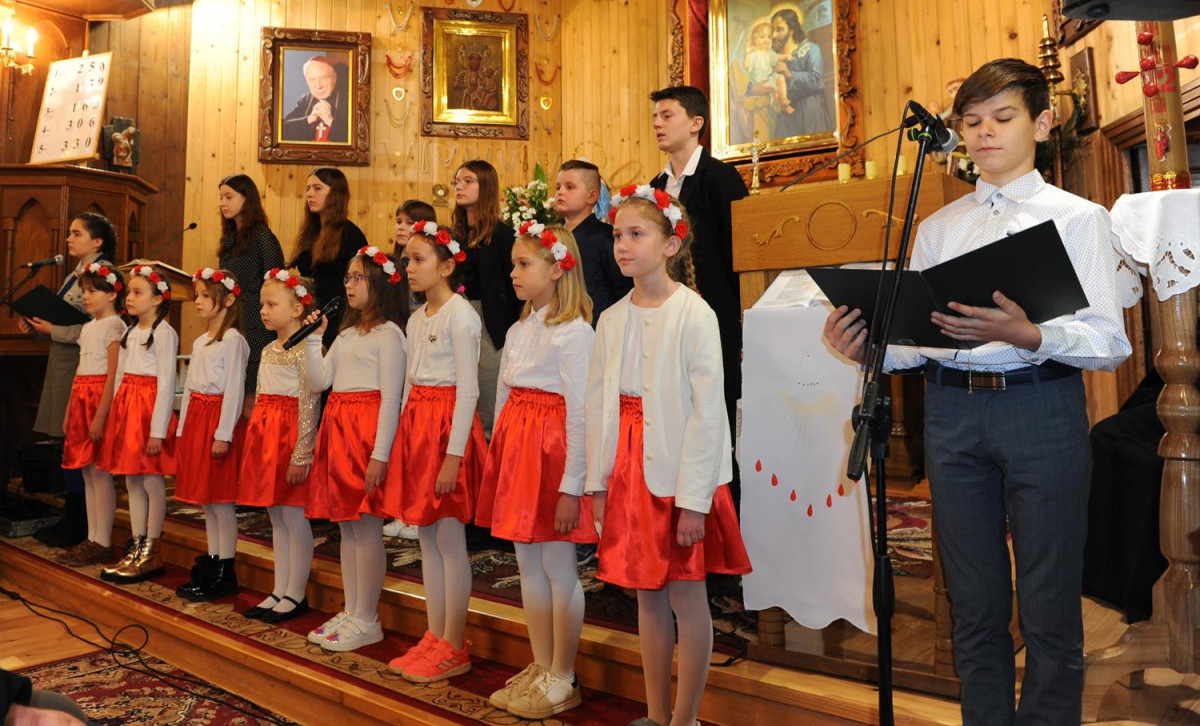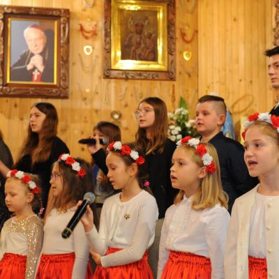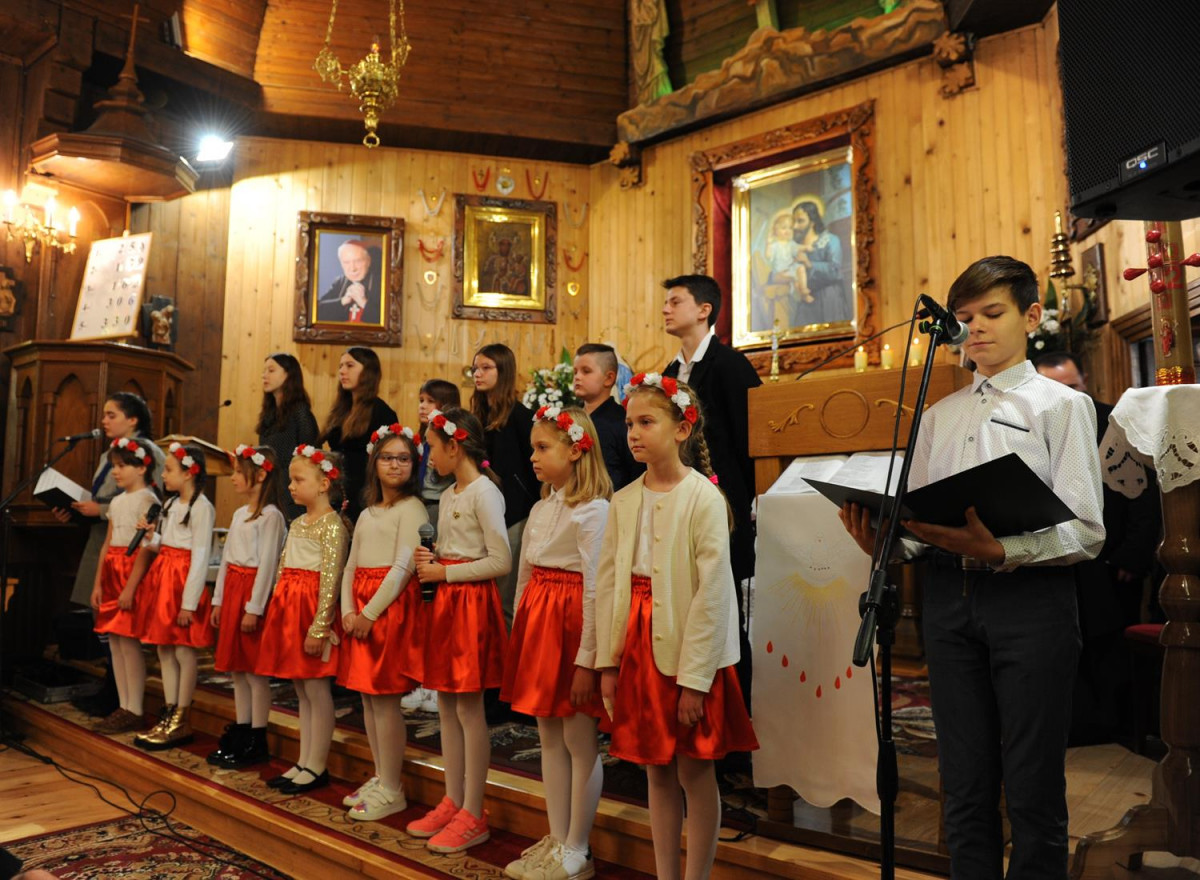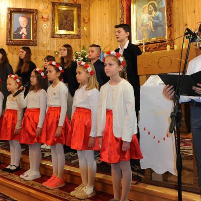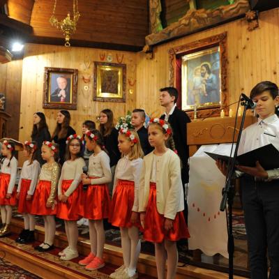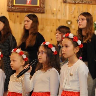 Po mszy odbył się montaż słowno- muzyczny w wykonaniu dzieci i młodzieży ze Szkoły Podstawowej w Komańczy. Młodzi artyści zaśpiewali utwory patriotyczne, jak m.in. „Dziś idę walczyć mamo”, „Mamo tyś płakała”, „Moja Ojczyzna”, czy „Mówią o Tobie dobrze”. Pieśni skłoniły nas wszystkich do głębokiej refleksji i wewnętrznych przeżyć.