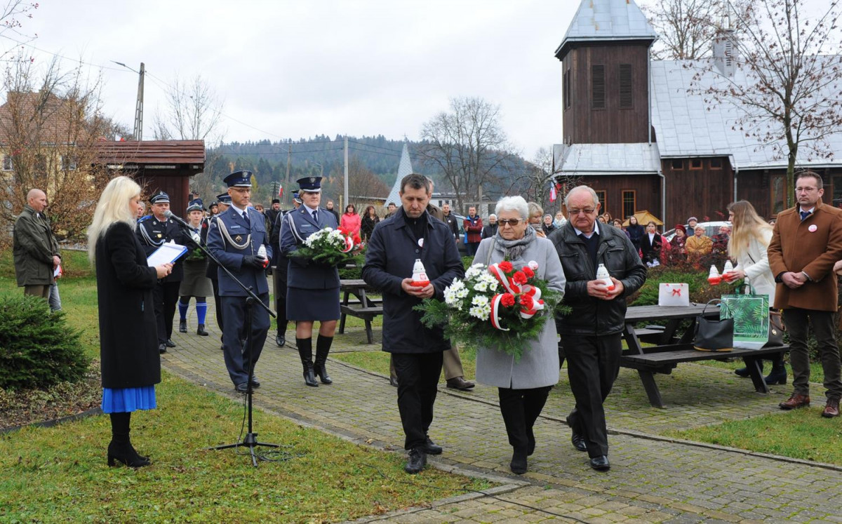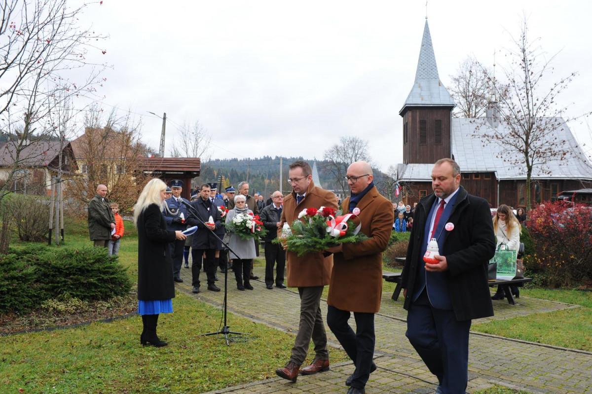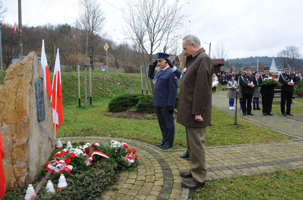 Po oddaniu hołdu Poległym za Ojczyznę głos zabrał Gospodarz obchodów gminnych 104. Rocznicy Odzyskania przez Polskę Niepodległości Pan Roman Bzdyk Wójt Gminy Komańcza, który to podziękował duchowieństwu za odprawienie Mszy Św. w Intencji Poległych za Ojczyznę, Siostrom Nazaretankom za czytania oraz psalm, Dyrekcji i gronu pedagogicznemu oraz dzieciom i młodzieży zaangażowanych do przygotowania części artystycznej z okazji 11 Listopada, Pocztom Sztandarowym i p. Jackowi Kowalskiemu dowódcy Pocztów Sztandarowych.
