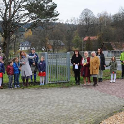 Po przepięknej części artystycznej wszyscy udali się na skwerek, gdzie miała miejsce część oficjalna– odśpiewano Hymn Państwowy Rzeczypospolitej Polskiej i oddano hołd Poległym za Ojczyznę.