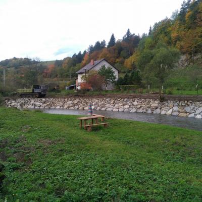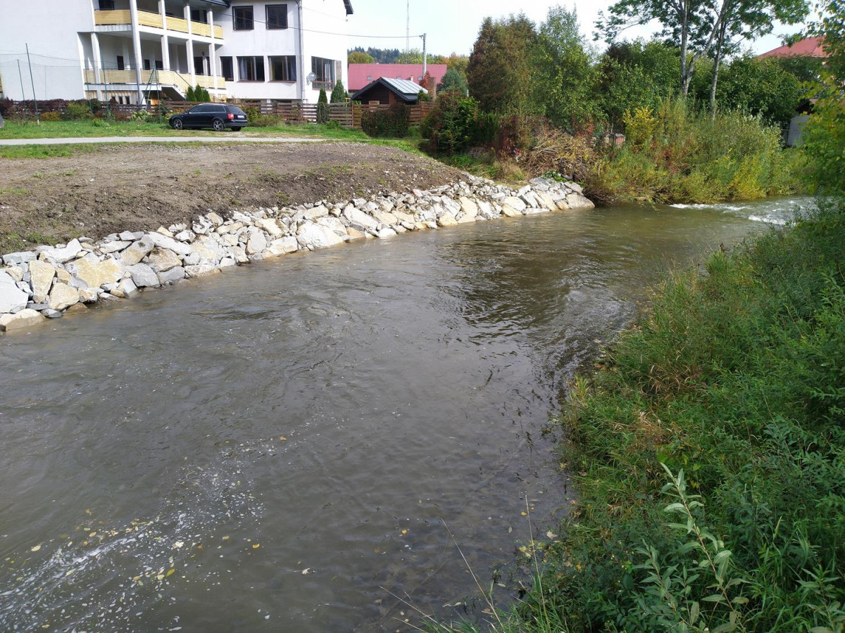 Państwowe Gospodarstwo Wodne Wody Polskie w roku bieżącym na wniosek Urzędu Gminy Komańcza wykonały prace zabezpieczeniowe na rzekach i ciekach w zlewni Osławy. W ramach robót wykonano umocnienie polegające na uzupełnieniu braków kamiennych w opasce na odcinku lewego brzegu rzeki Osławica na odcinku 140m.b., w tym na potoku Osławica w pobliżu restauracji „Pod Kominkiem” na brzegu lewym i prawym dwa odcinki po 30m.b. Dodatkowo wykonano umocnienia na ujściu potoku Barbarka na prawym brzegu na odcinku około 45m.b.