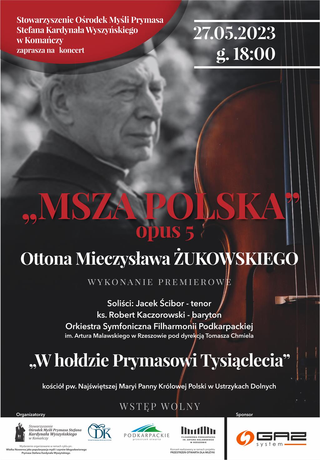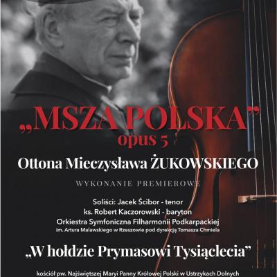 - Sobota 27.05.2023 r. o godz. 18.00, kościół pw. NMP Królowej Polski w Ustrzykach Dolnych - koncert „Msza Polska” opus 5 Ottona Mieczysława Żukowskiego (wykonanie premierowe) w wykonaniu: Solistów: Jacka Ścibora – tenor i ks. Roberta Kaczorowskiego – baryton i Orkiestry Symfonicznej Filharmonii Podkarpackiej im. Artura Malawskiego w Rzeszowie pod dyrekcją Tomasza Chmiela;