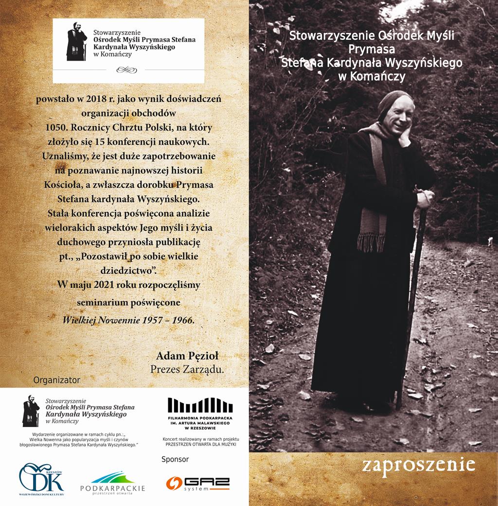 WSTĘP WOLNY! Organizatorem koncertu jest Stowarzyszenie Ośrodek Myśli Prymasa Stefana Kardynała Wyszyńskiego w Komańczy.