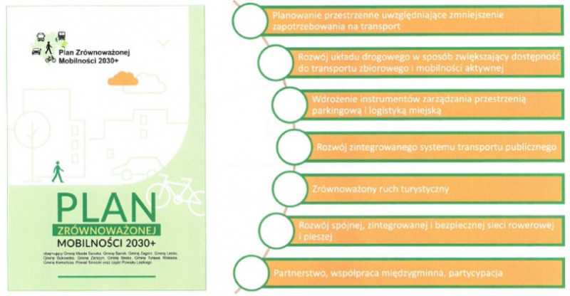 Plan Zrównoważonej Mobilności 2030+ obejmujący Gminę Miasta Sanoka, Gminę Sanok, Gminę Zagórz, Gminę Lesko, Gminę Bukowsko, Gminę Zarszyn, Gminę Besko, Gminę Tyrawa Wołoska, Gminę Komańcza, Powiat Sanocki oraz część Powiatu Leskiego, to dokument strategiczno - planistyczny, który nakreśla kierunki rozwoju całego obszaru w zakresie rozwoju mobilności. Projekt planu był poddany konsultacjom społecznym w dniach od 6 marca 2023 r. do dnia 28 marca 2023 r. wszystkie zgłoszone uwagi w ramach konsultacji zostały uwzględnione w dokumencie. Ponadto dla dokumentu została opracowana prognoza oddziaływania na środowisko, która również została poddana konsultacjom społecznym i uzyskała pozytywne opinie Regionalnego Dyrektora Ochrony Środowiska i Podkarpackiego Państwowego Inspektora Sanitarnego.