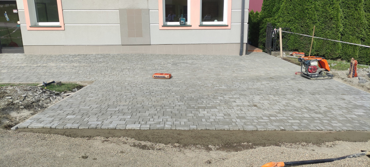 - przebudowa kostki brukowej o powierzchni 70m2 celem dostosowania wejść oraz podjazdu dla osób z niepełnosprawnością;