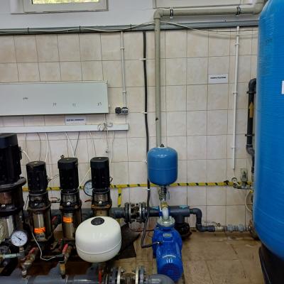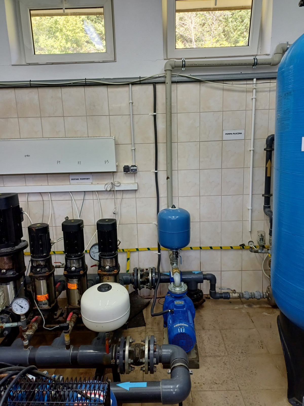 - na stacji Uzdatniania Wody w Nowym ŁUPKOWIE montaż falownika pomp pierwszego stopnia, złoże filtrujące ujęcia brzeżnego, zasuw odcinających – 9 szt., filtra pośpiesznego drugiego stopnia wraz ze złożem – 2 szt., zbiornika kontaktowego – 2m3, pompy dozującej chlor, zaworu bezpieczeństwa regulowanego do 4 Bar;