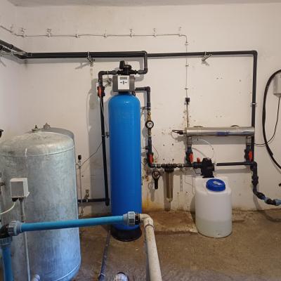 - na Stacji Uzdatniania Wody w SZCZAWNEM montaż filtra pośpiesznego drugiego stopnia wraz ze złożem, pompy płucznej, automatu dozowania chloru wraz z sondą Cl, w tym komplet pomiarowy AH oraz ultrafiltrację;