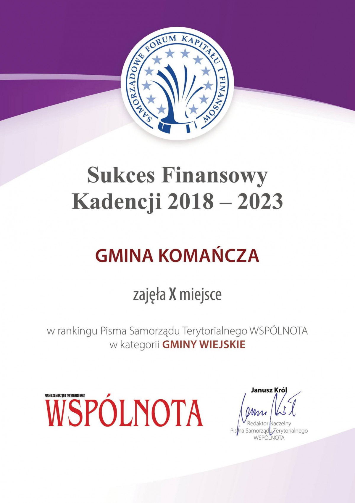To wielki sukces Gminy KOMAŃCZA i wszystkich pracowników Urzędu Gminy, w tym jej jednostek organizacyjnych.
