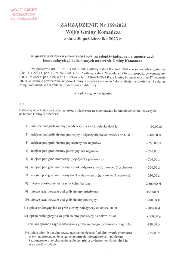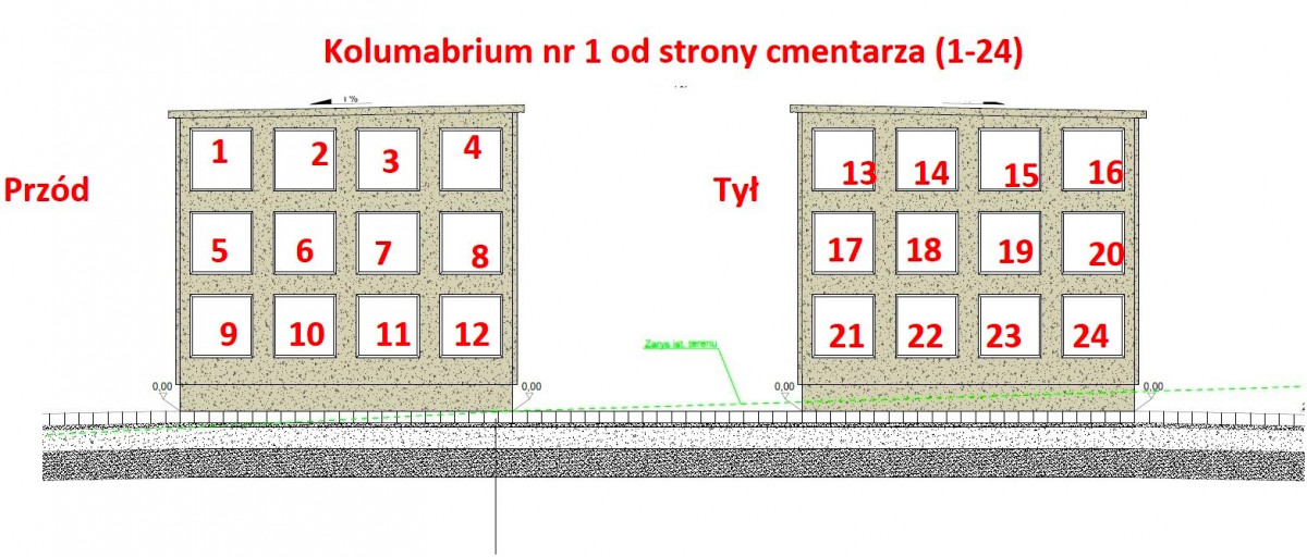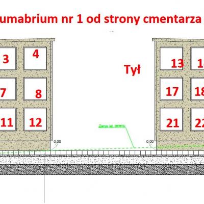 Rezerwacja niszy nastąpi po zapłaceniu faktury VAT wystawionej przez Gminę Komancza. W przypadku braku wpłaty rezerwacja zostanie anulowana. Zakupu nisz można rezerwować według numeracji umieszczonej na tablicach nagrobnych, jak na zmieszczonej rycinie.