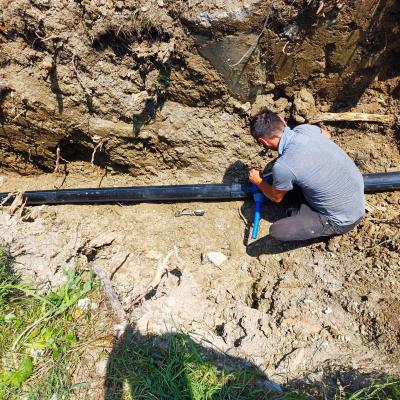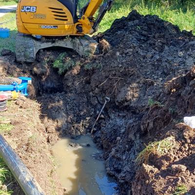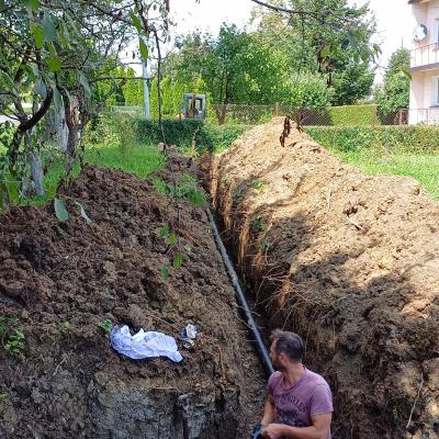W ramach zadania pn. „Budowa i przebudowa wodociągów w miejscowości WISŁOK WIELKI i CZYSTOGARB” zakres robót obejmował budowę sieci wodociągowej z rur polietylenowych typu 100RC PN16, SDR17 w płaszczu polipropylenowym w wykopach otwartych, wąskoprzestrzennych na głębokości ok. 1,6m, w tym uzbrojenie studni wierconej.