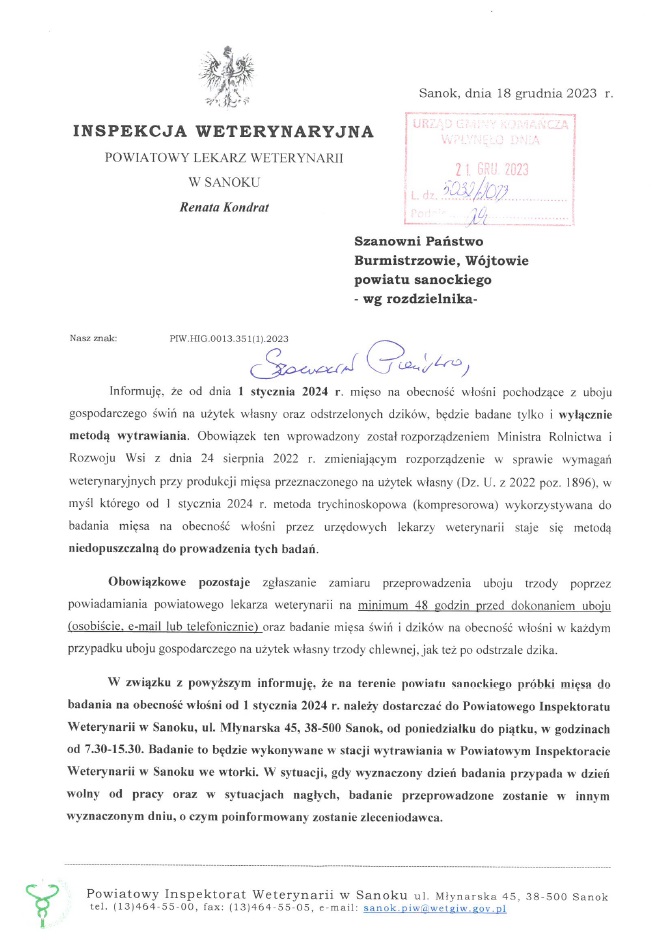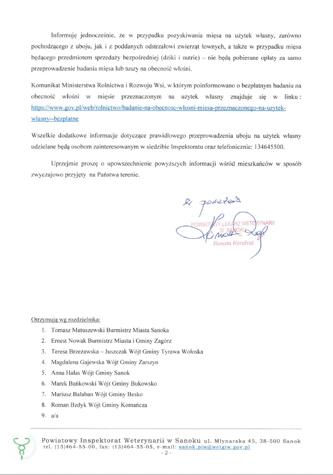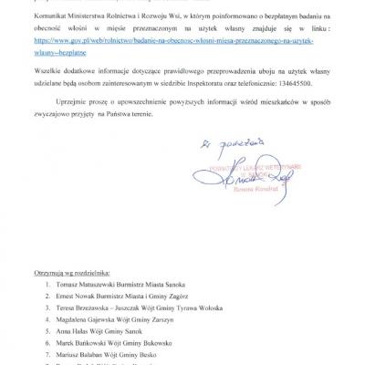 INFORMACJA POWIATOWEGO LEKARZA WETERYNARII W SANOKU