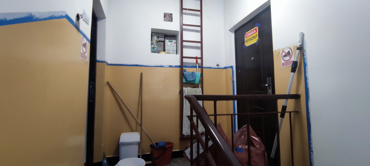 Zakres prac obejmował odświeżenie ścian i sufitów, odmalowanie kaloryferów i stolarki drzwiowej. Ponadto zamontowano tablice ogłoszeniową oraz nowe rolety w 3 oknach. Poprzednio, oświetlenie użytkowe wymieniono na LED.