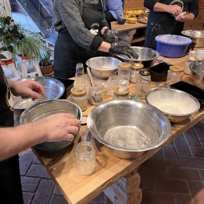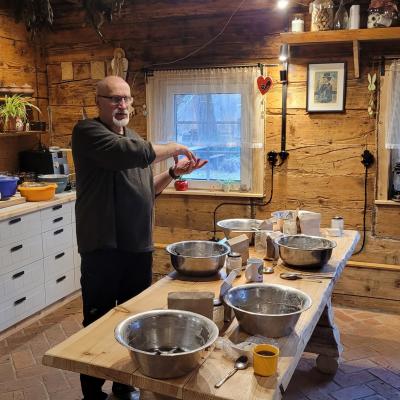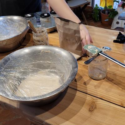 Zajęcia odbywają się zarówno na miejscu w SMOLNIKU, jak i online, na facebookowej grupie Warsztatowa Chyża - Chleb na zakwasie.