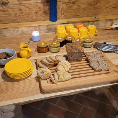 Warsztaty były również okazją do spróbowania zrobienia własnego masła, w tym takiego z czosnkiem niedźwiedzim. Między czasie uczestnicy warsztatów mogli skosztować różnorodnych wypieków i przetworów będących w ofercie chyży.