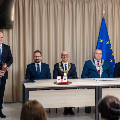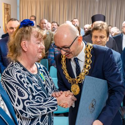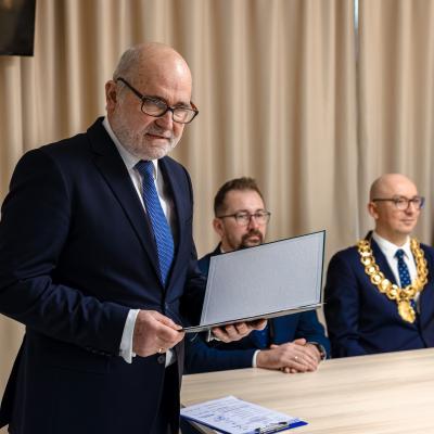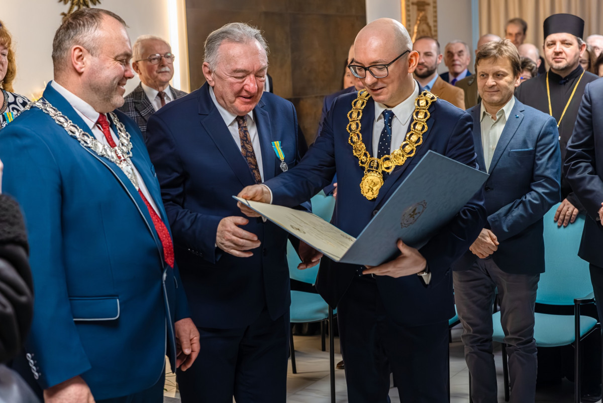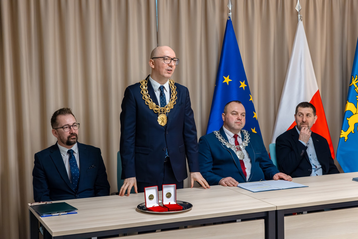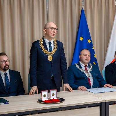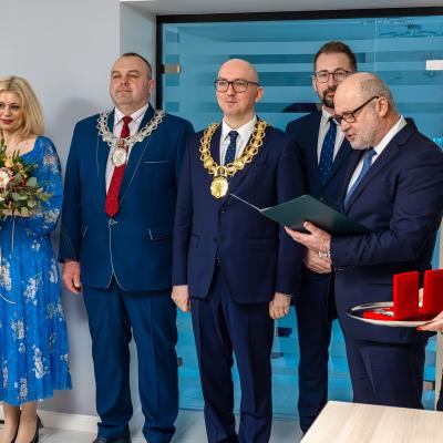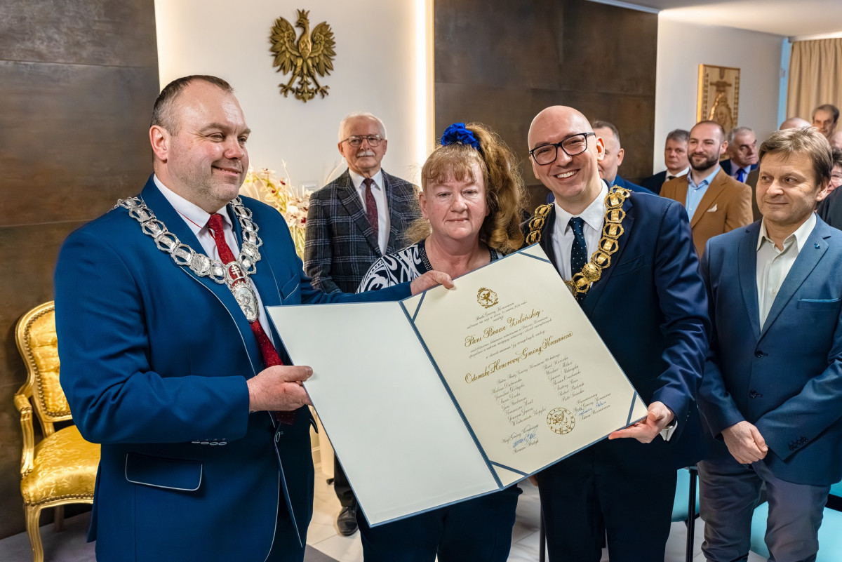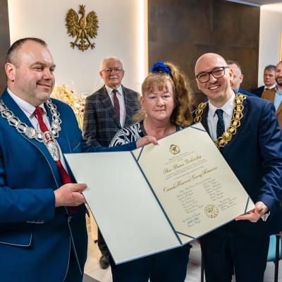 Wraz z ODZNAKĄ HONOROWĄ wręczony został Dyplom nadania ODZNAKI HONOROWEJ oraz AKT NADANIA ODZNAKI HONOROWEJ GMINY KOMAŃCZA.