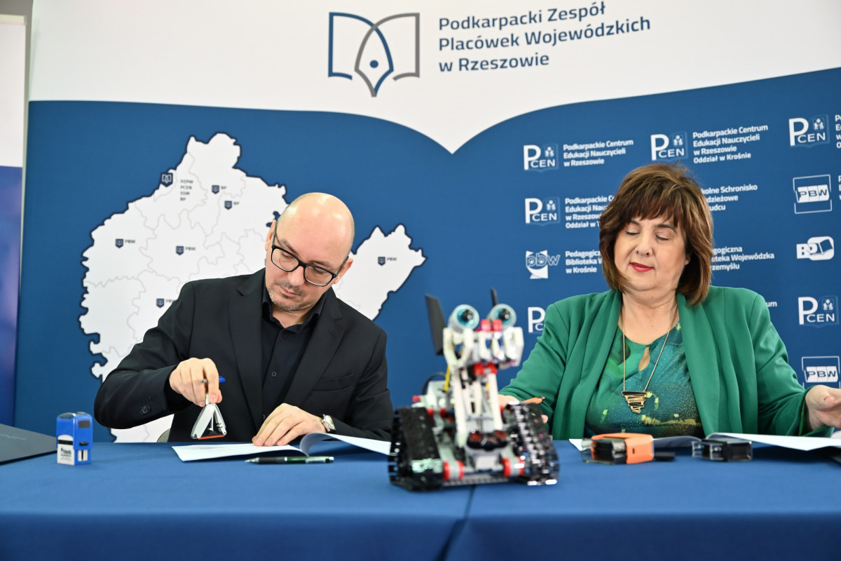 Informujemy, że Szkoły Podstawowe, których Organem Prowadzącym jest Gmina Komańcza, zostały zakwalifikowane do projektu pn.”RaP STEAM – robotyka i programowanie w szkołach podstawowych z terenu województwa podkarpackiego”. W tym celu została podpisana umowa pomiędzy Partnerem Wiodącym reprezentowanym przez Panią Dyrektor Podkarpackiego Zespołu Placówek Wojewódzkich w Rzeszowie - Krystynę WRÓBLEWSKĄ a Gminą Komańcza.