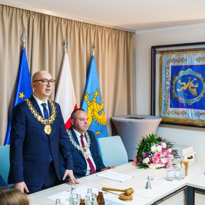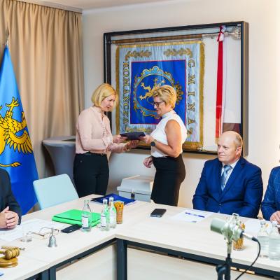 W trakcie sesji, Radni nowej kadencji i Roman BZDYK – Wójt elekt z rąk Przewodniczącej Gminnej Komisji Wyborczej Pani Moniki GUŚTAK odebrali zaświadczenia o wyborze i złożyli uroczyste ślubowania. Na posiedzeniu Radni podjęli pierwsze uchwały w sprawie wyłonienia Prezydium Rady.