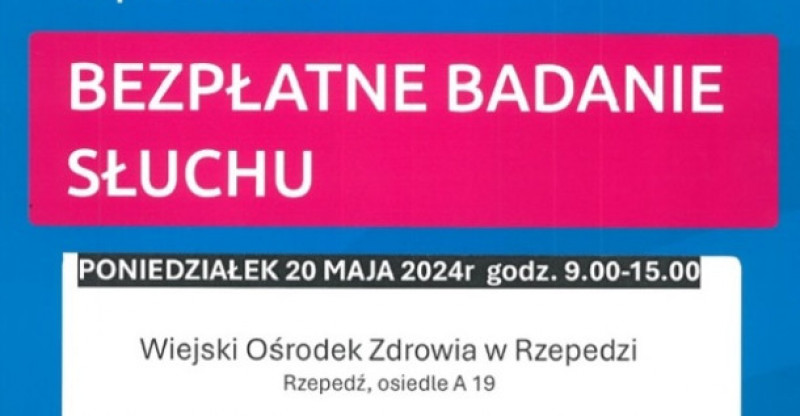 Wiejski Ośrodek Zdrowia w Rzepedzi - PONIEDZIAŁEK 20 MAJA 2024 r. godz. 9:00-15:00