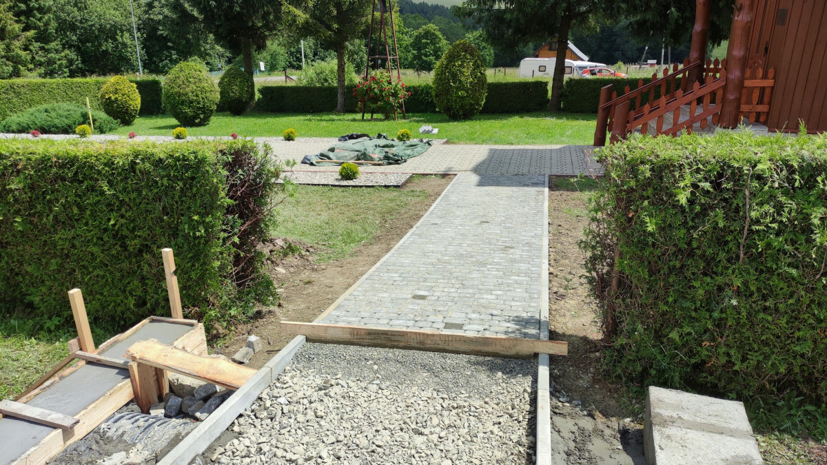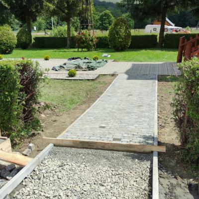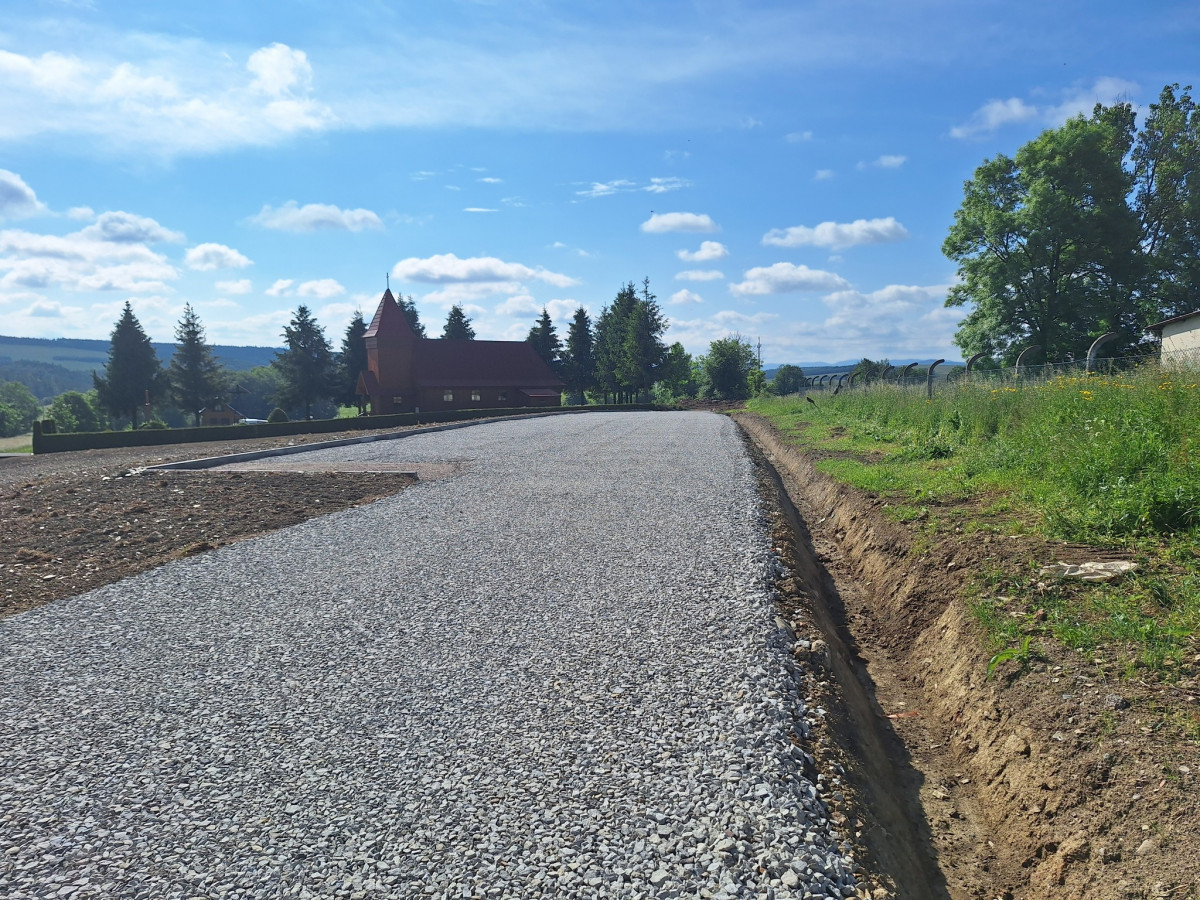 W ramach prac wykonano roboty ziemne, montaż przepustów oraz ułożenie geowłókniny separacyjnej pod warstwami podbudowy. Po wykonaniu profilowania i zagęszczenia podłoża pod warstwy konstrukcyjne nawierzchni, ułożono podbudowę z kruszywa łamanego oraz nawierzchnię z tłucznia kamiennego.