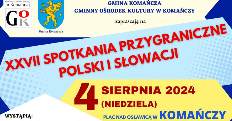 Zapraszamy serdecznie na XXVII Spotkania Przygraniczne Polski i Słowacji, które odbędą się w dniu 4 sierpnia 2024 r. (niedziela) na placu nad Osławicą w Komańczy.